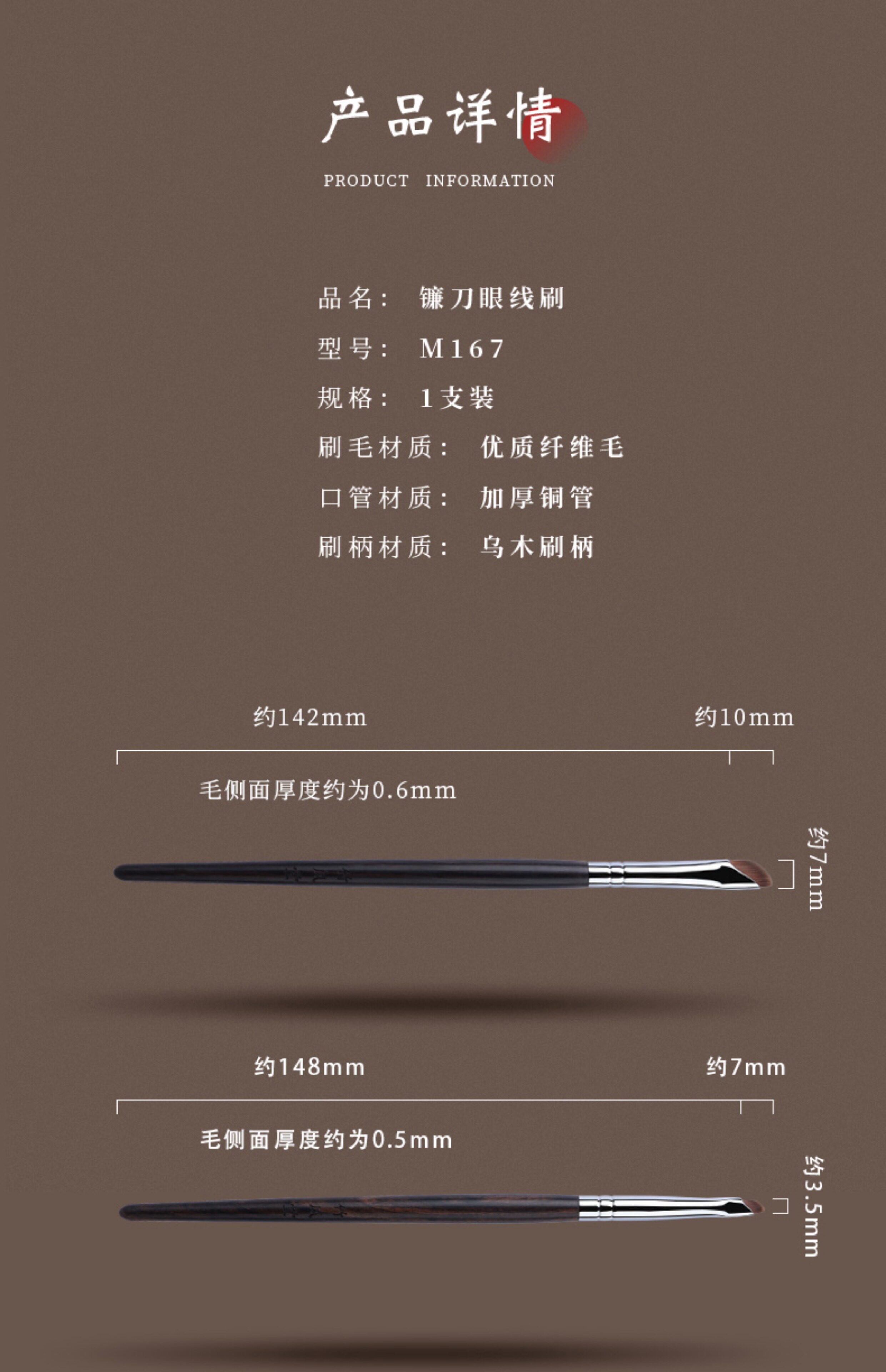 竹鳳堂化妝刷M167鐮刀眼線刷細鋒斜頭超薄眼瞼下至臥蠶眉刷竹風堂