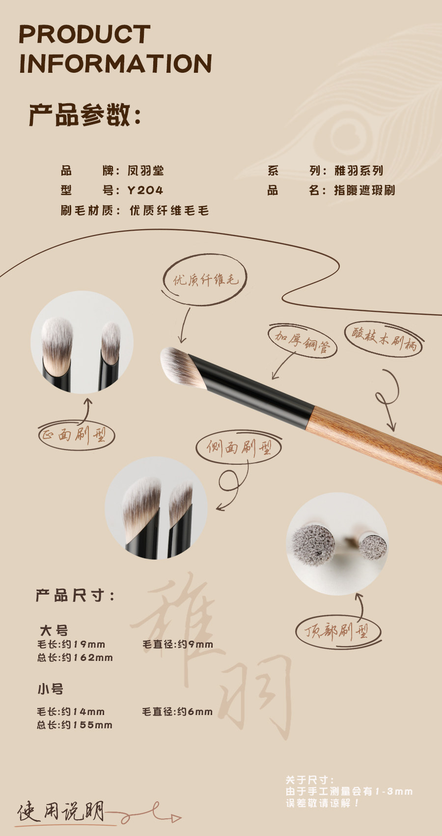 鳳羽堂化妝刷稚羽系列Y204指腹遮瑕刷無痕遮痘印淚溝黑眼圈遮暇筆