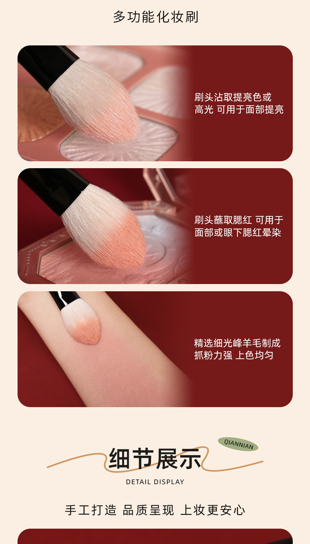 牽唸H46杏仁核化妝刷細光峰羊毛抓粉強暈染自然高光修容多功能刷