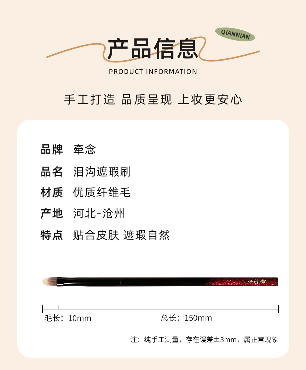 牽唸H45扁頭舌形遮瑕刷淚溝法令紋黑眼圈精準遮瑕優質纖維遮瑕刷