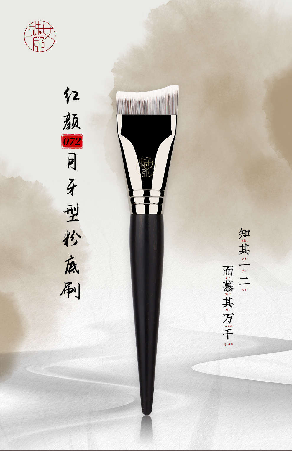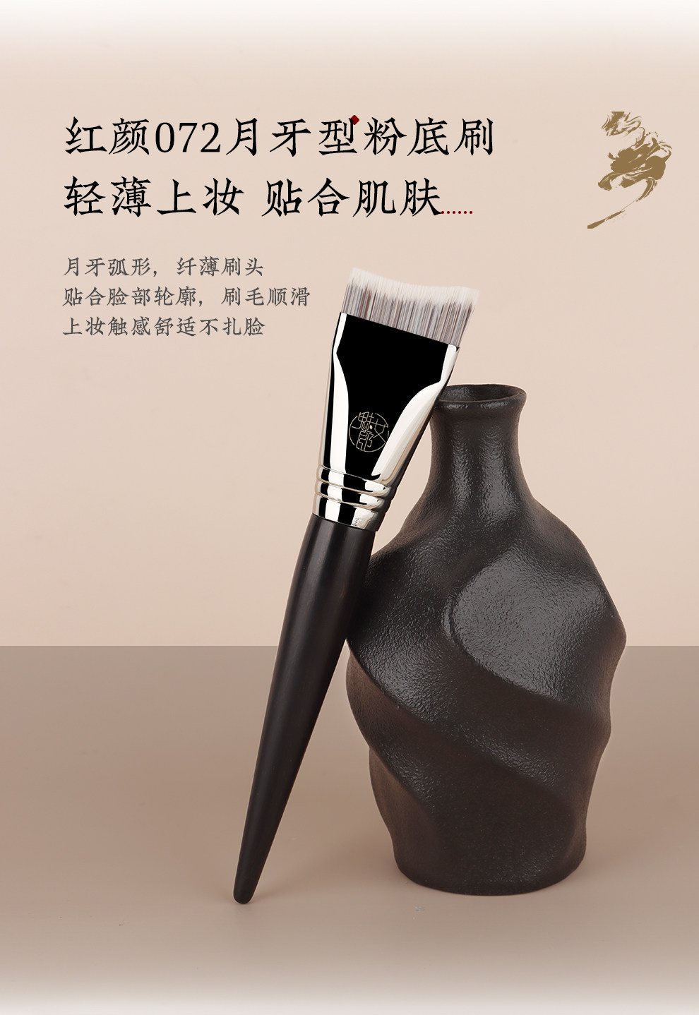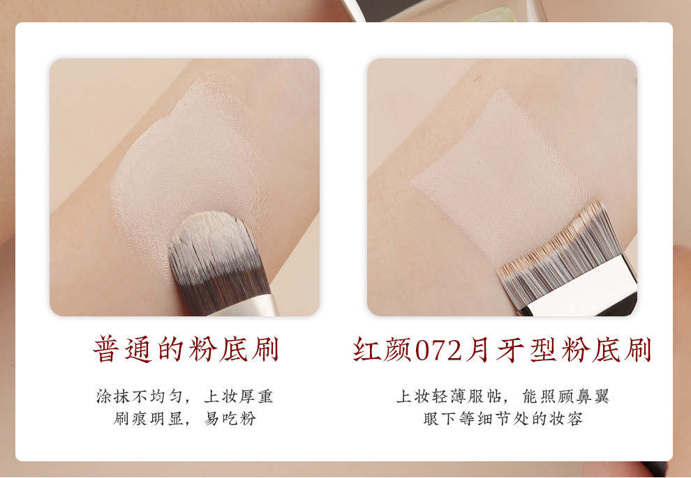 魅女郎紅顔072月牙型粉底刷輕薄無痕扁弧形面膜粉底液專用化妝刷