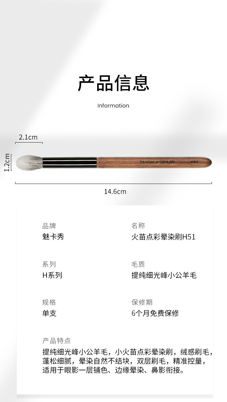 魅卡秀化妝刷H51眼影刷點彩鋪色火苗高光暈染刷鼻影刷動物毛刷子