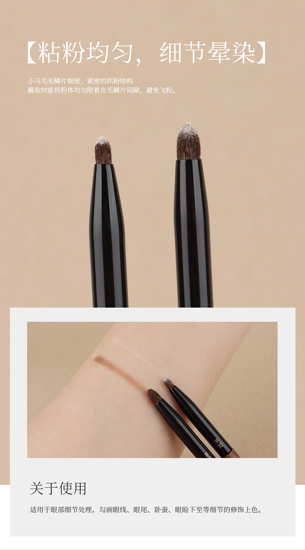 魅仔H32錐形細節刷臥蠶眼頭提亮刷眼部眼影高光尖錐暈染化妝刷子