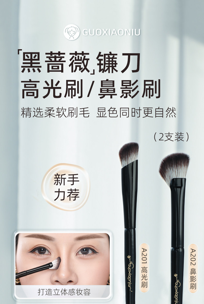 郭小妞鐮刀鼻影刷斜頭隂影修容高光刷子細節提亮精準暈染2支套裝