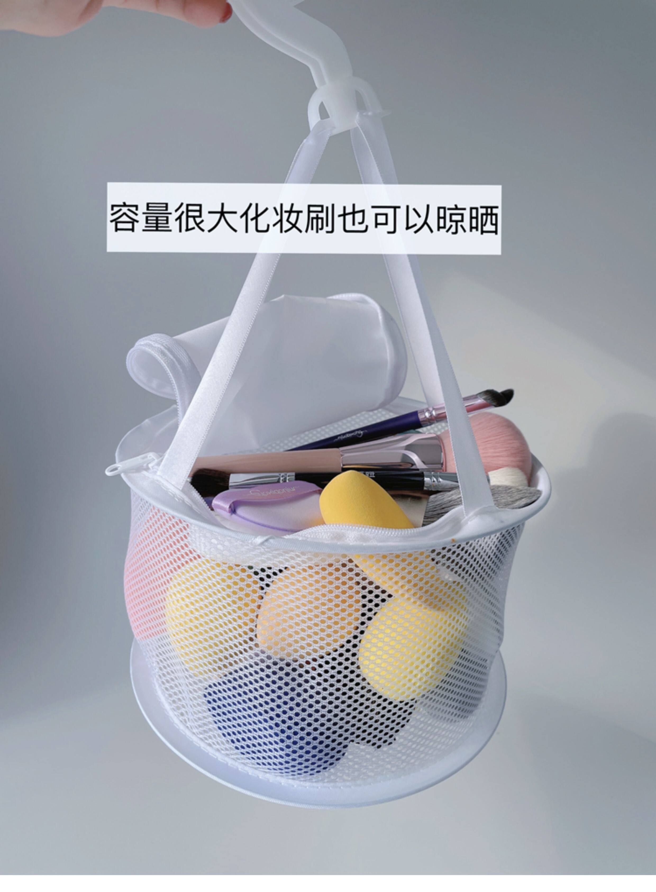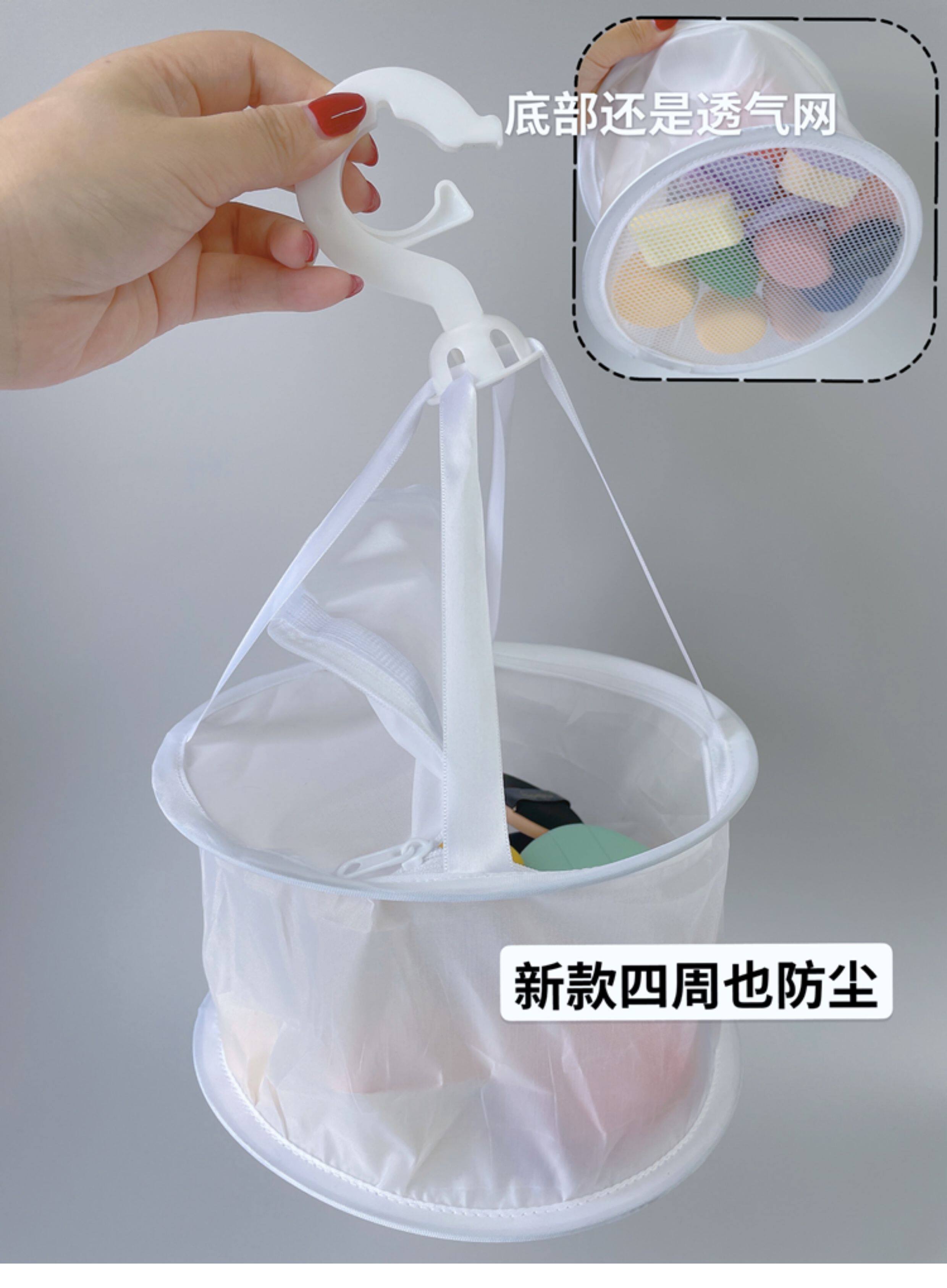 郭小妞牆裂推薦!有蓋防塵美妝蛋氣墊化妝刷晾曬網兜防風吹防髮霉