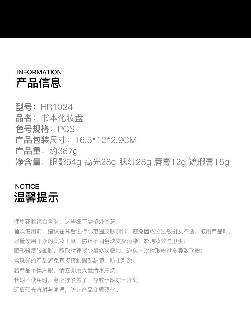 | 品名 | HERORANGE-HR1024-78色書本化妝盤 |