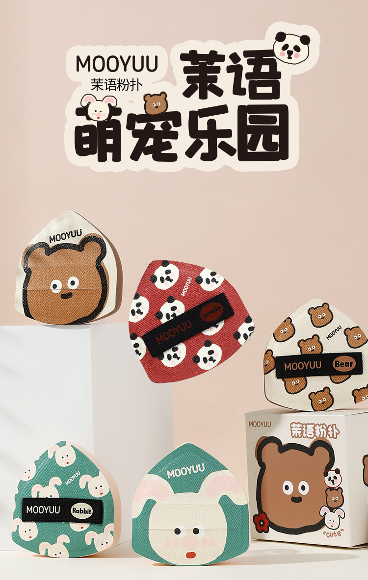茉語萌寵樂園棉花糖粉撲小熊小動物化妝推薦乾用不易吃粉系列測評