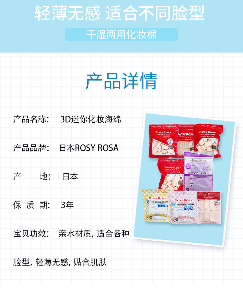 日本Rosy Rosa化妝海綿蛋3D迷你粉撲彩妝蛋美妝粉撲不吃粉