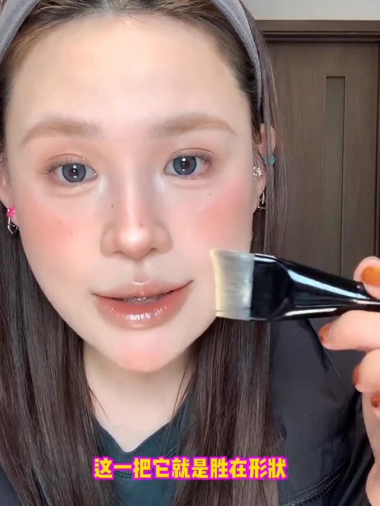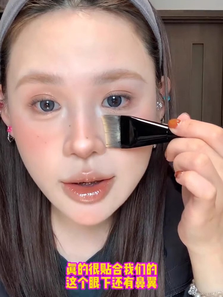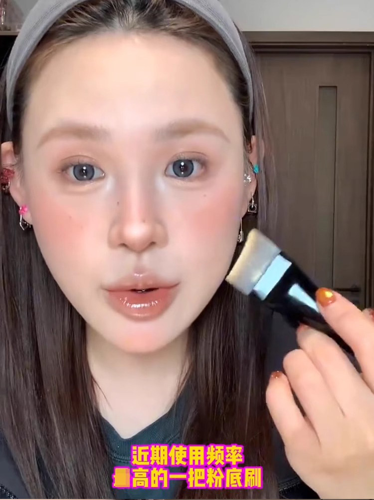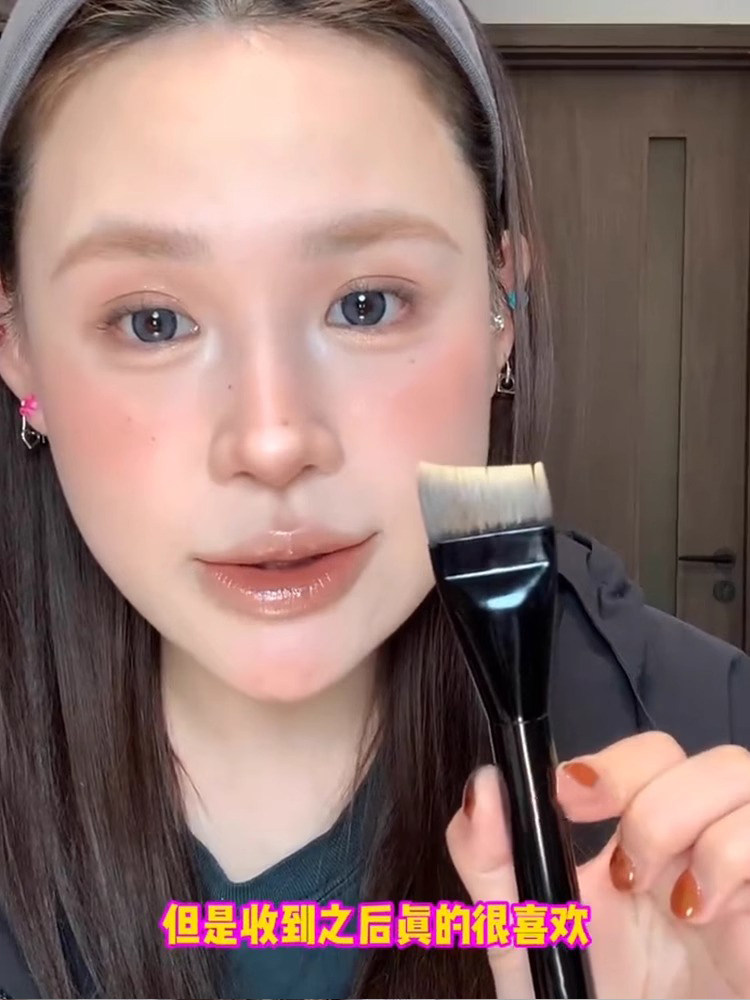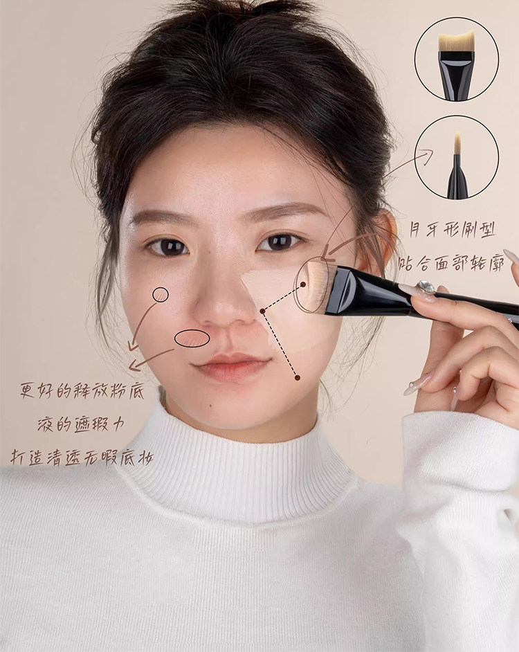 一刷到底!月牙粉底刷弧形扁頭超薄底妝刷月牙化妝刷粉底液刷子