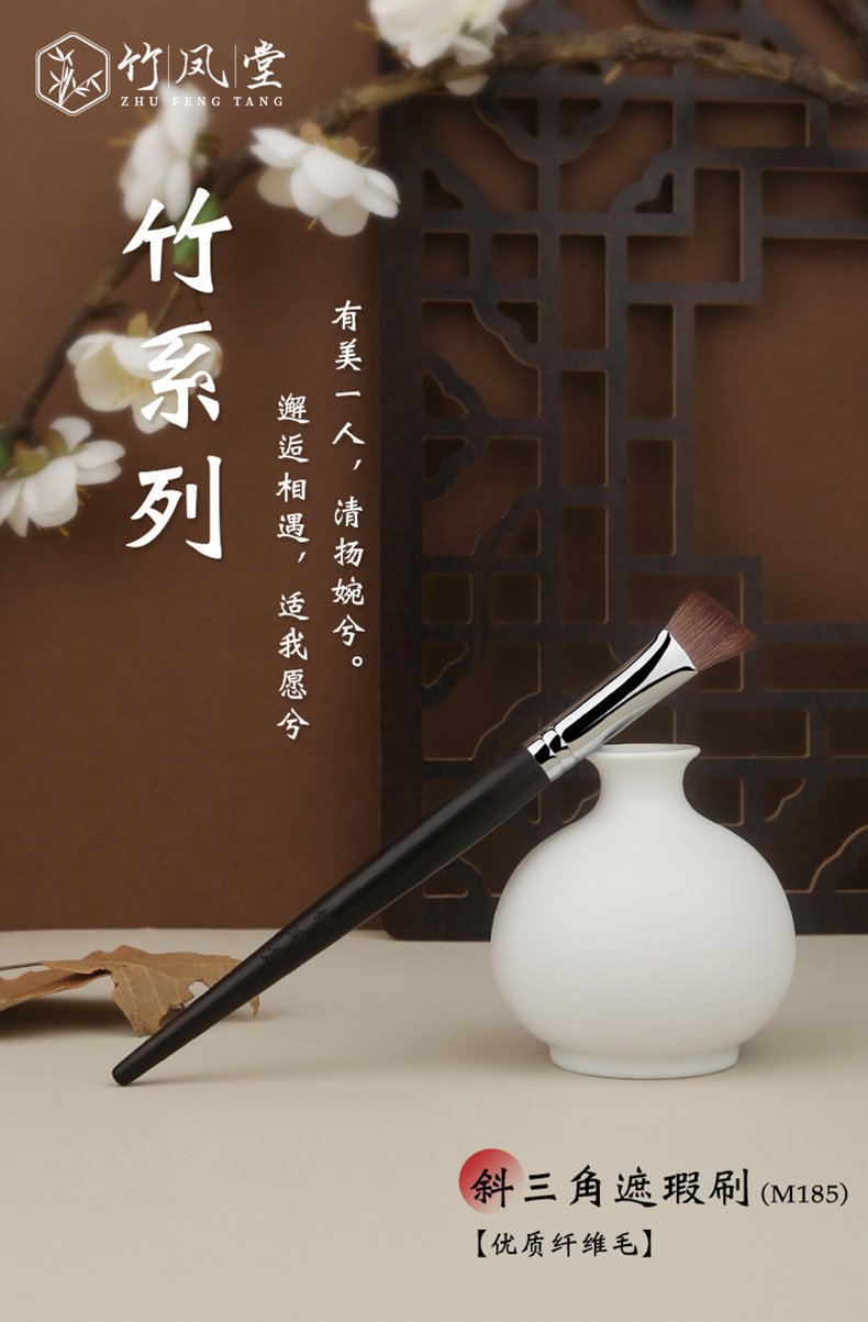 竹鳳堂化妝刷M185斜三角遮瑕刷指腹提亮小號高光刷軟毛無痕竹風堂