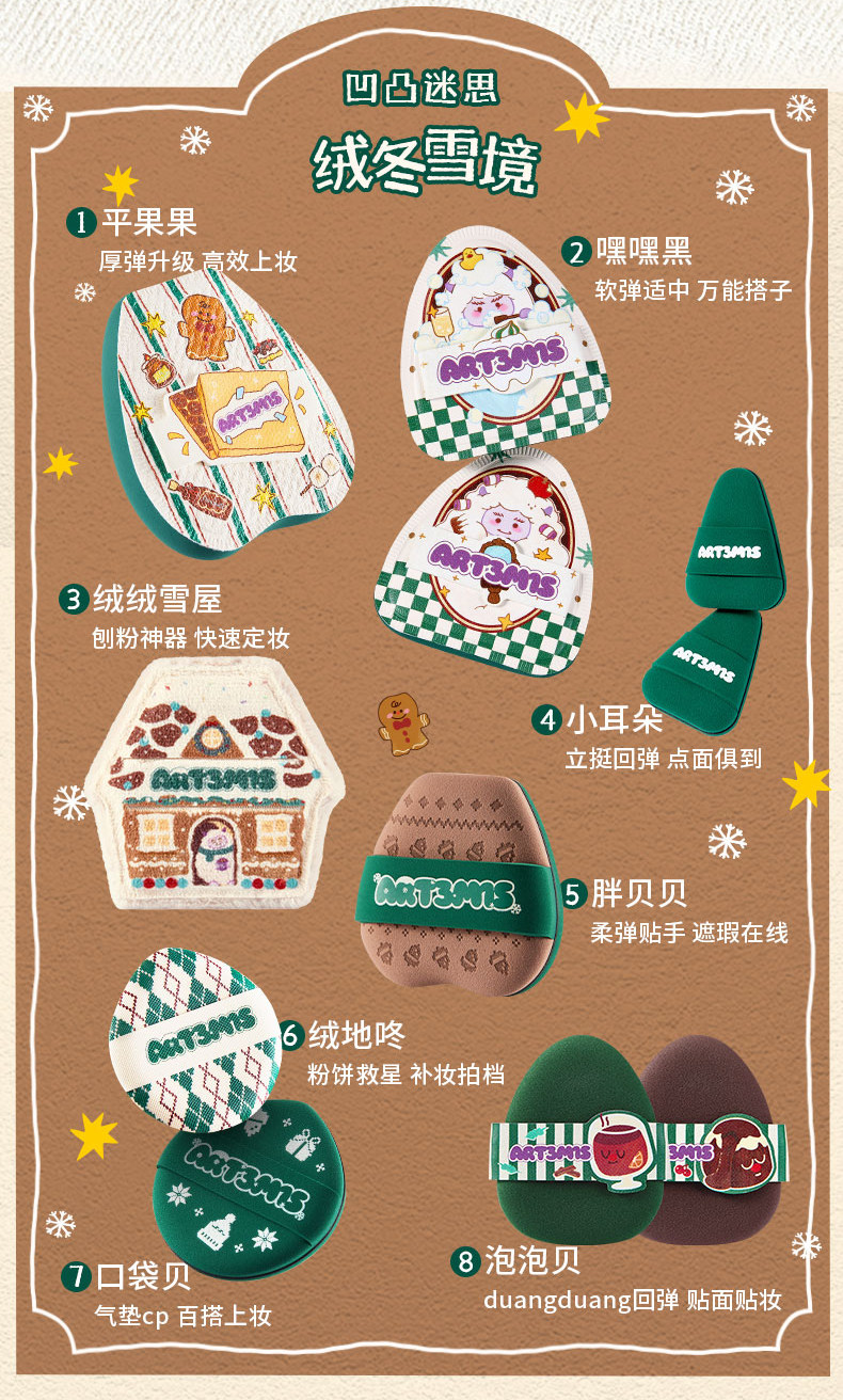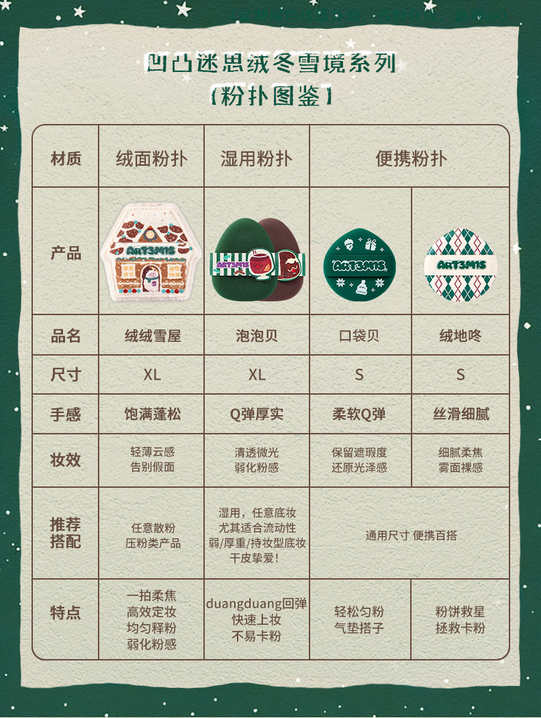 凹凸迷思絨冬雪境系列粉撲粉底液氣墊專用不易吃粉聖誕禮盒限定