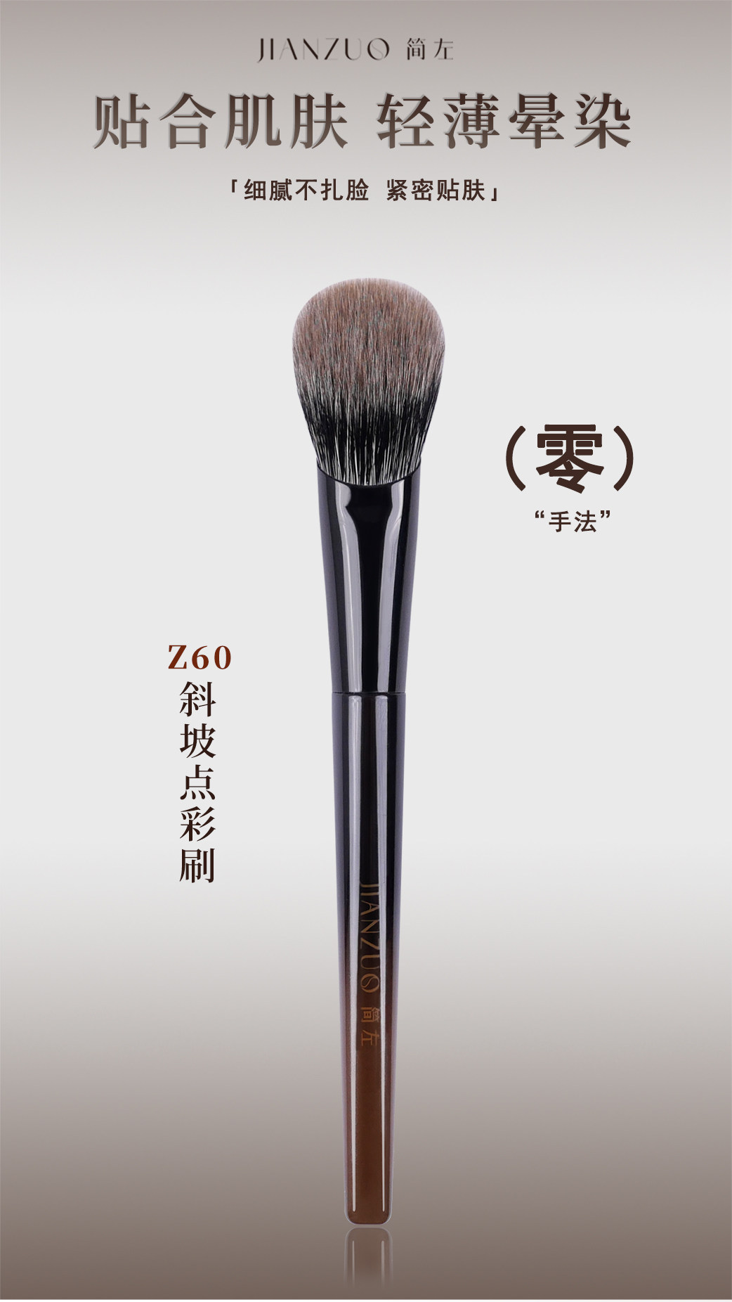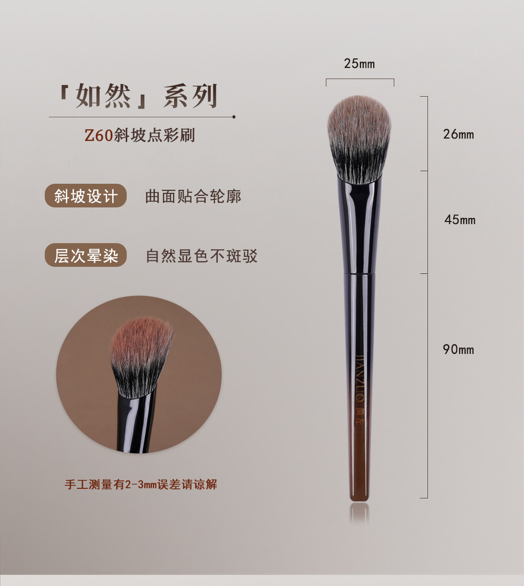 簡左如然Z60腮紅刷藍狐動物毛指腹坡形修容點彩刷暈染無界化妝刷