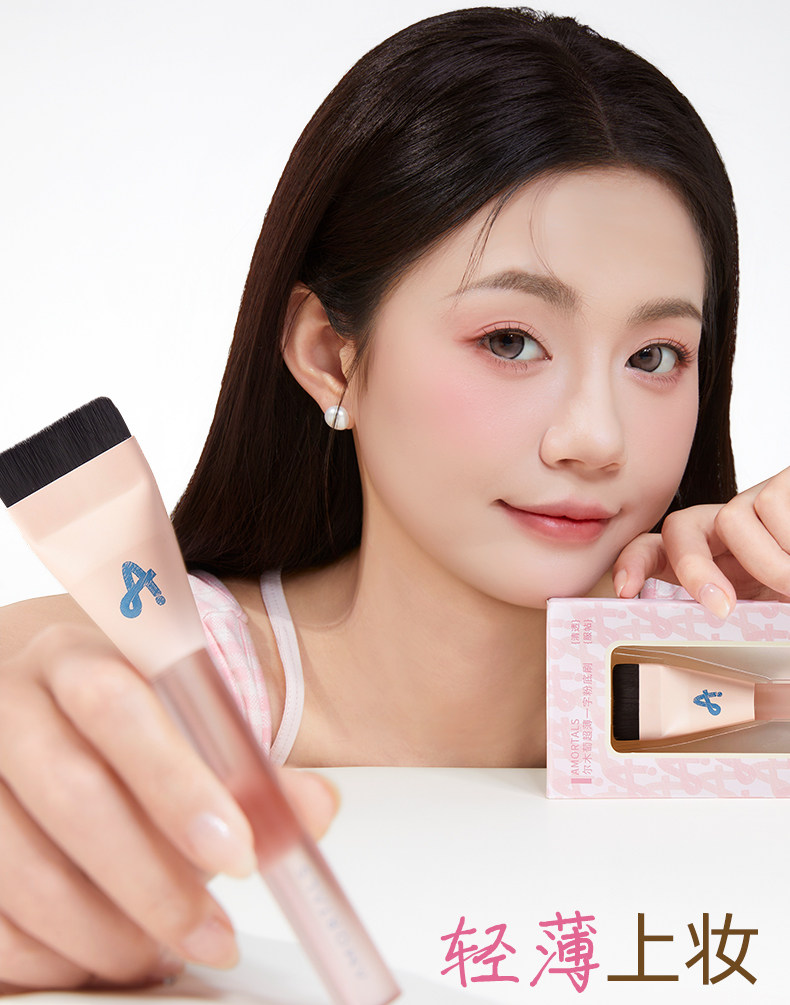 爾木萄一字型粉底刷扁平頭不吃粉刀鋒無痕初學者粉底液化妝刷子