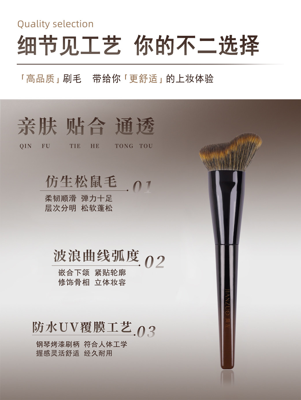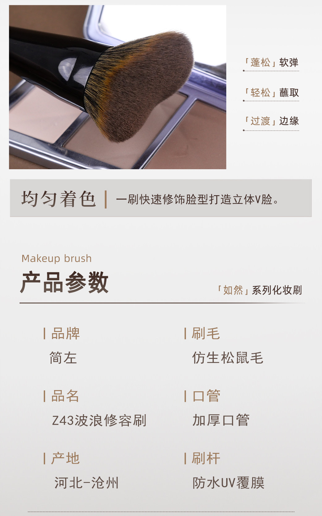 簡左如然Z43仿生松鼠毛波浪修容刷貼合臉部側臉隂影輪廓刷化妝刷