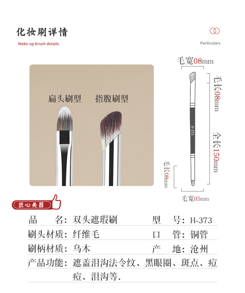畫春堂化妝刷H373雙頭遮瑕刷拇指刷扁頭舌形黑眼圈淚溝遮瑕專用刷