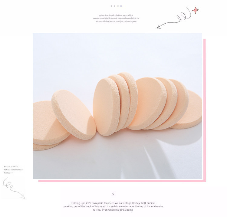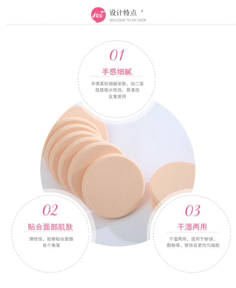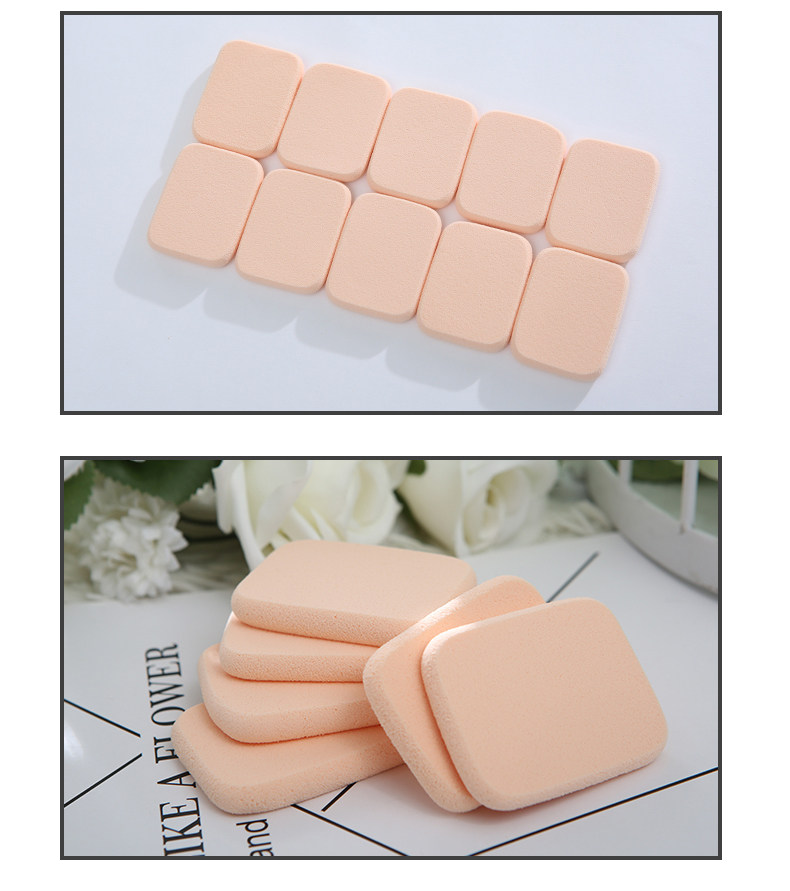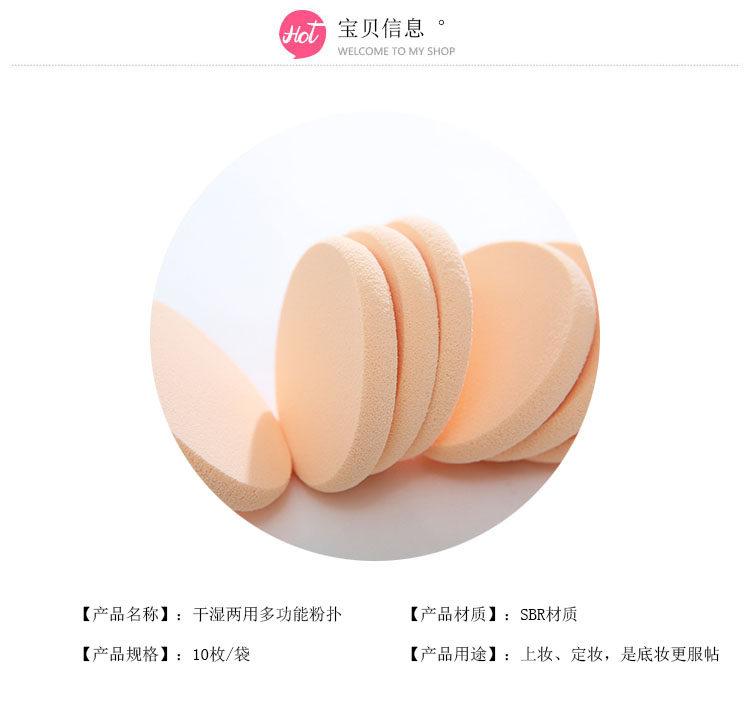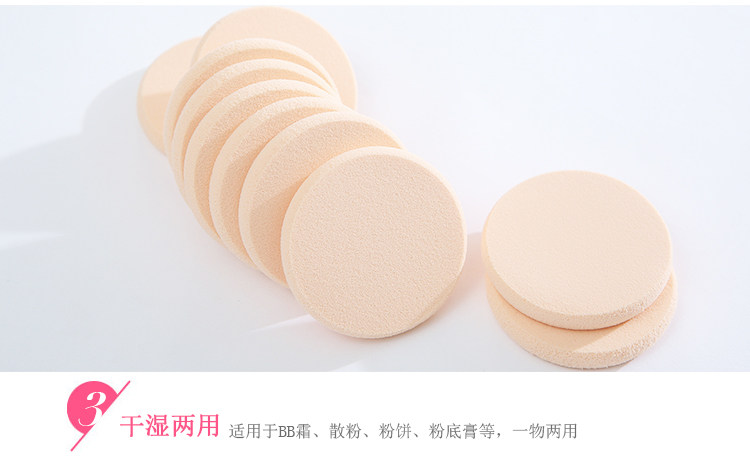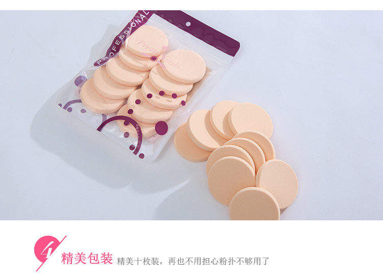 10片裝圓形磨邊海棉粉撲海綿撲乾濕兩用粉底液乾粉BB霜方形化妝棉