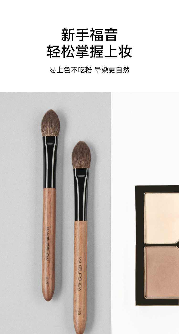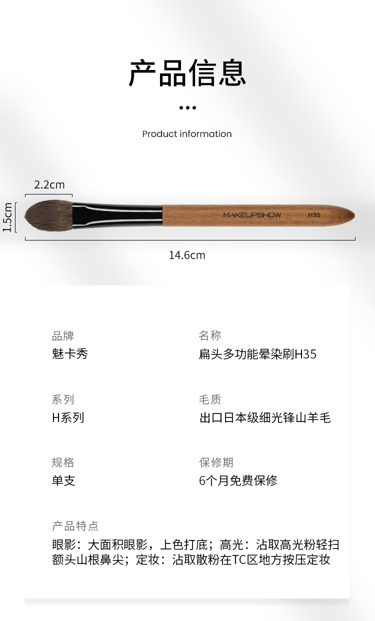 魅卡秀高光刷扁頭侷部散粉刷定妝眼影刷杏仁型鋪色羊毛化妝刷H35