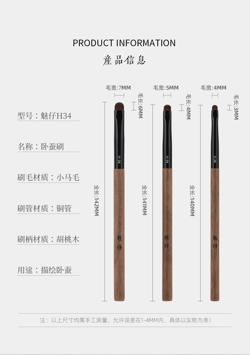魅仔H34臥蠶刷小號扁頭眼部細節刷眼影刷眼線下至勾勒提亮化妝刷