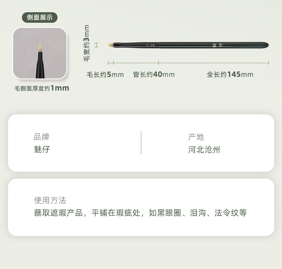 魅仔Y18扁頭遮瑕刷無痕遮蓋黑眼圈淚溝法令紋舌形細節遮暇化妝刷