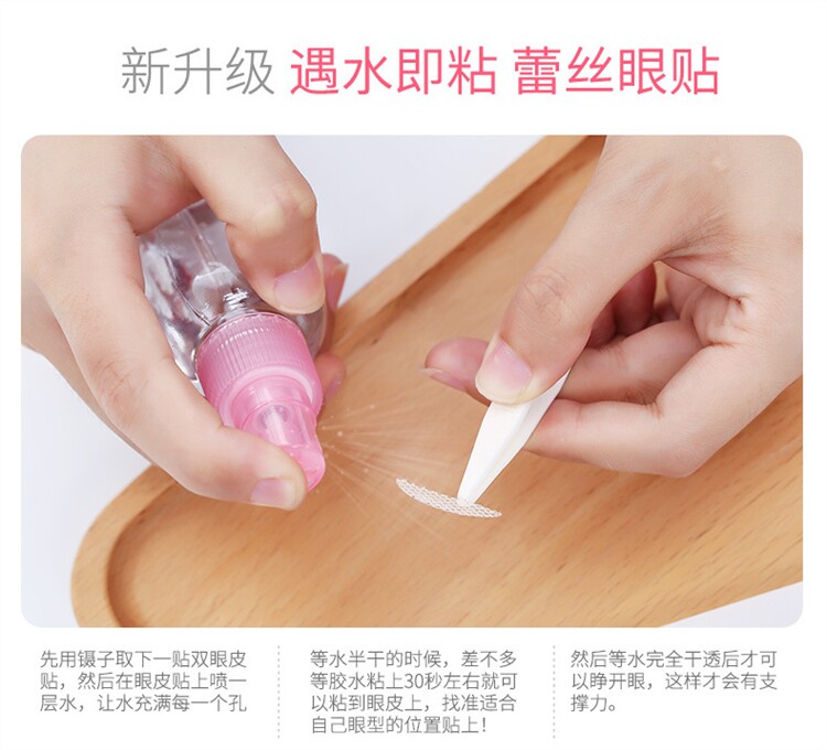 遇水即粘蕾絲雙眼皮貼隱形網紗自然美目貼橄欖免膠水持久定型