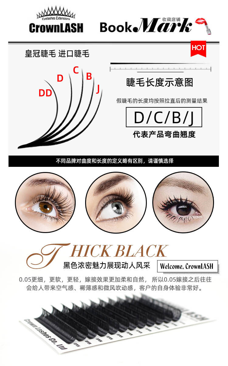 CrownLASH進口皇冠睫毛3D濃密更細更柔BCD0.07單號裝7-15mm美妝