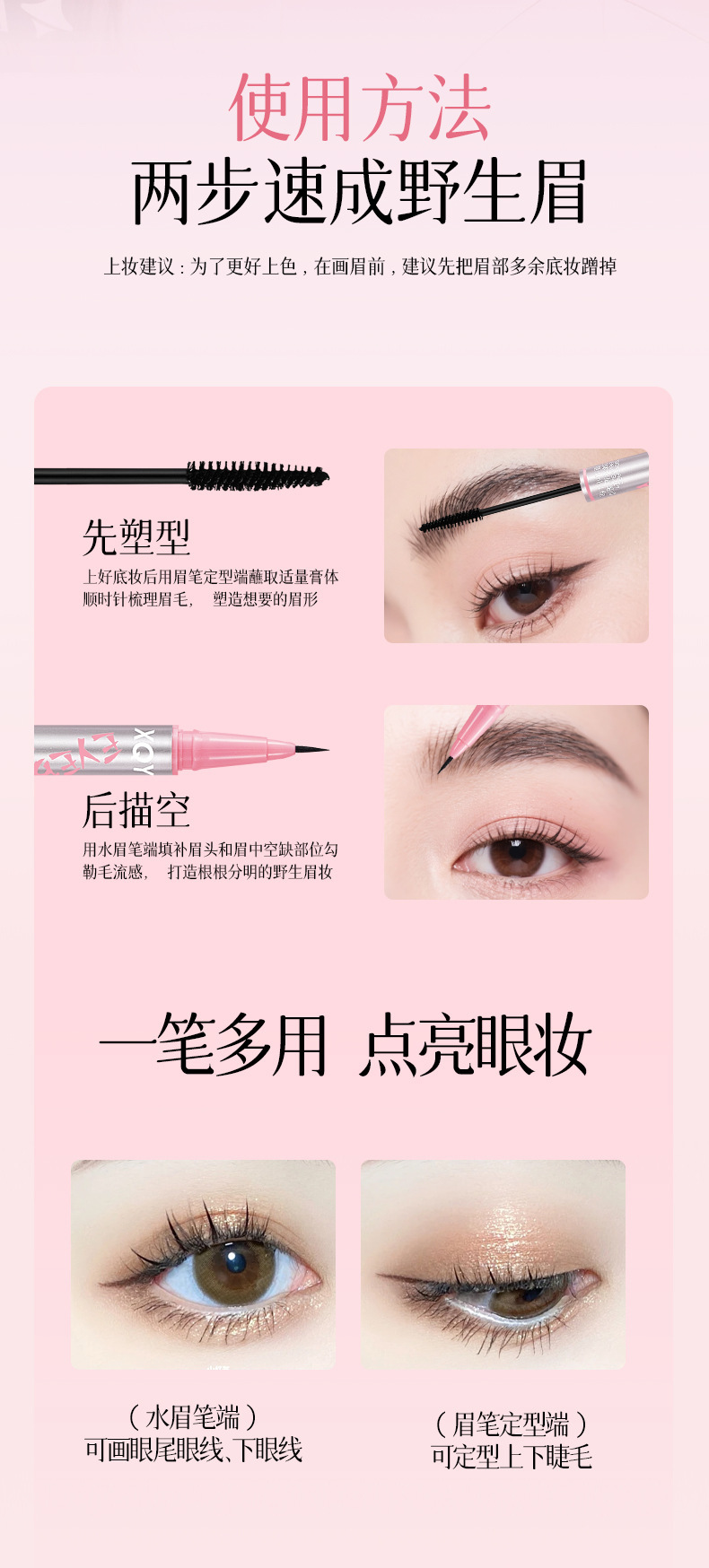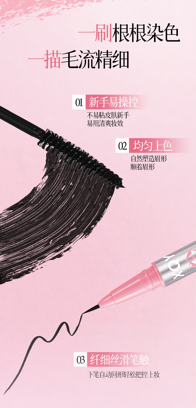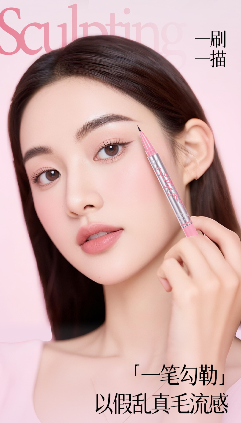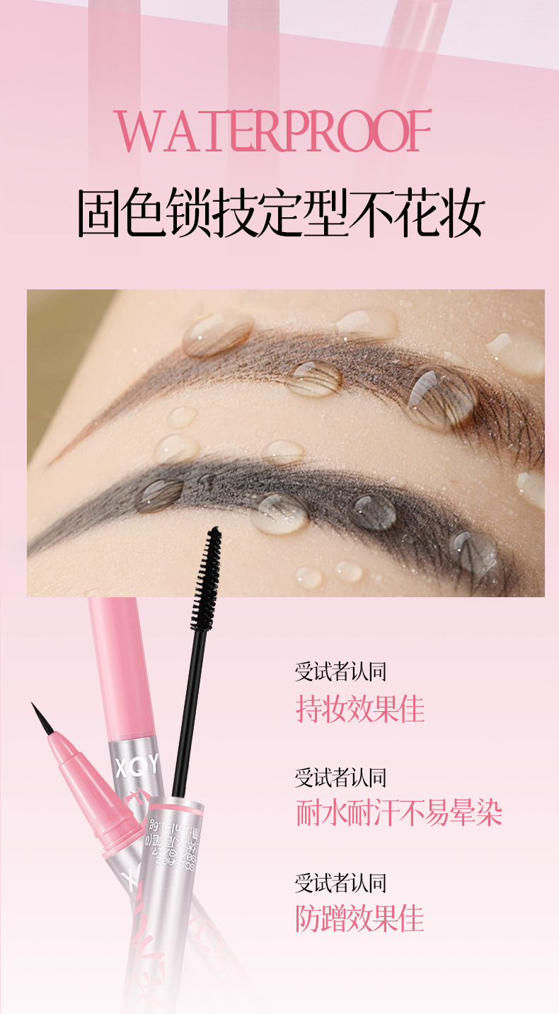 QXQY雙頭立體水眉筆順滑柔色防水防汗持久不易暈染極細筆頭染眉膏
