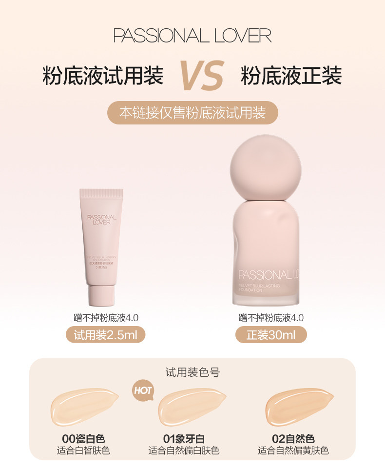 【U先秒殺】PL蹭不掉粉底液4.0體驗裝2.5ml油皮底妝-不改地址