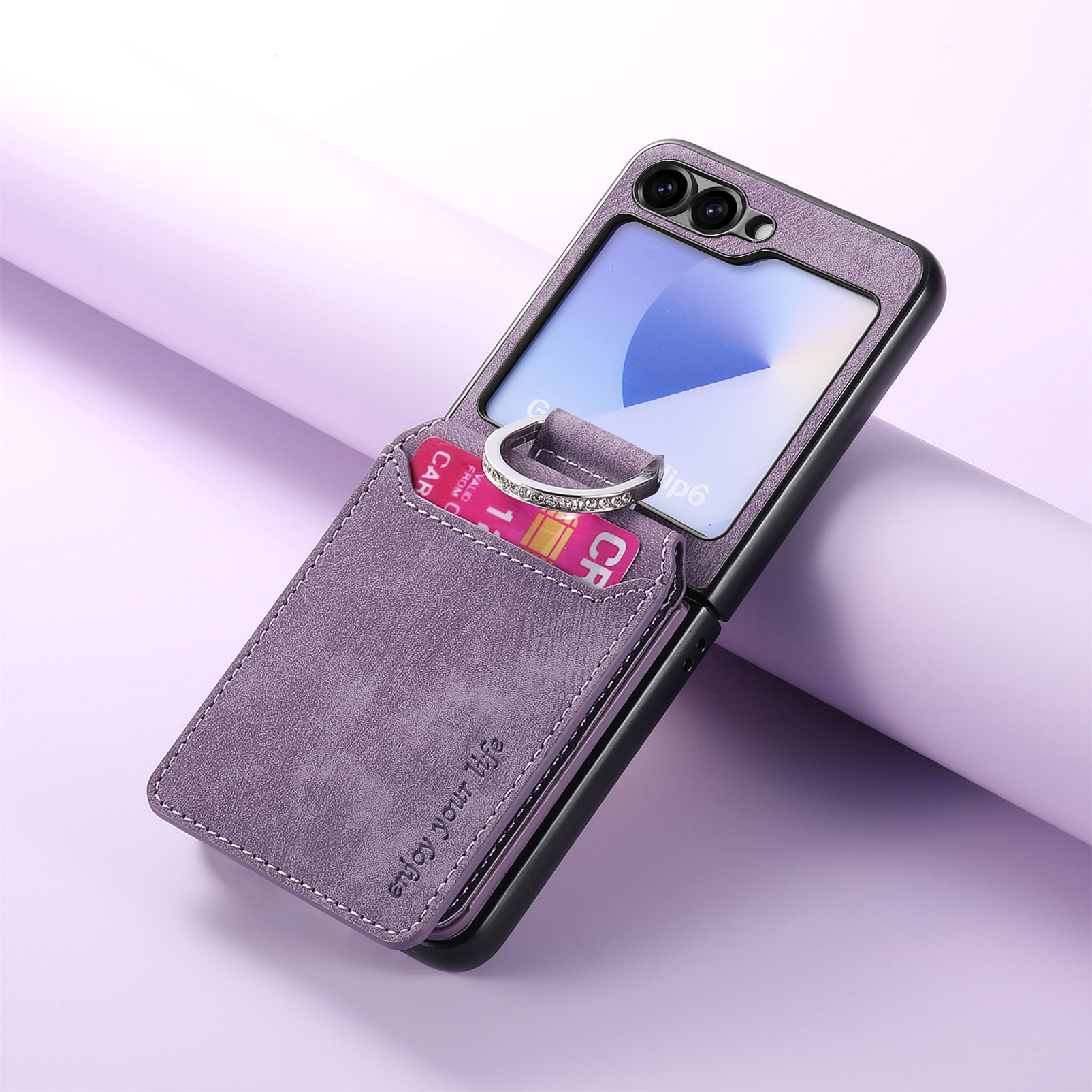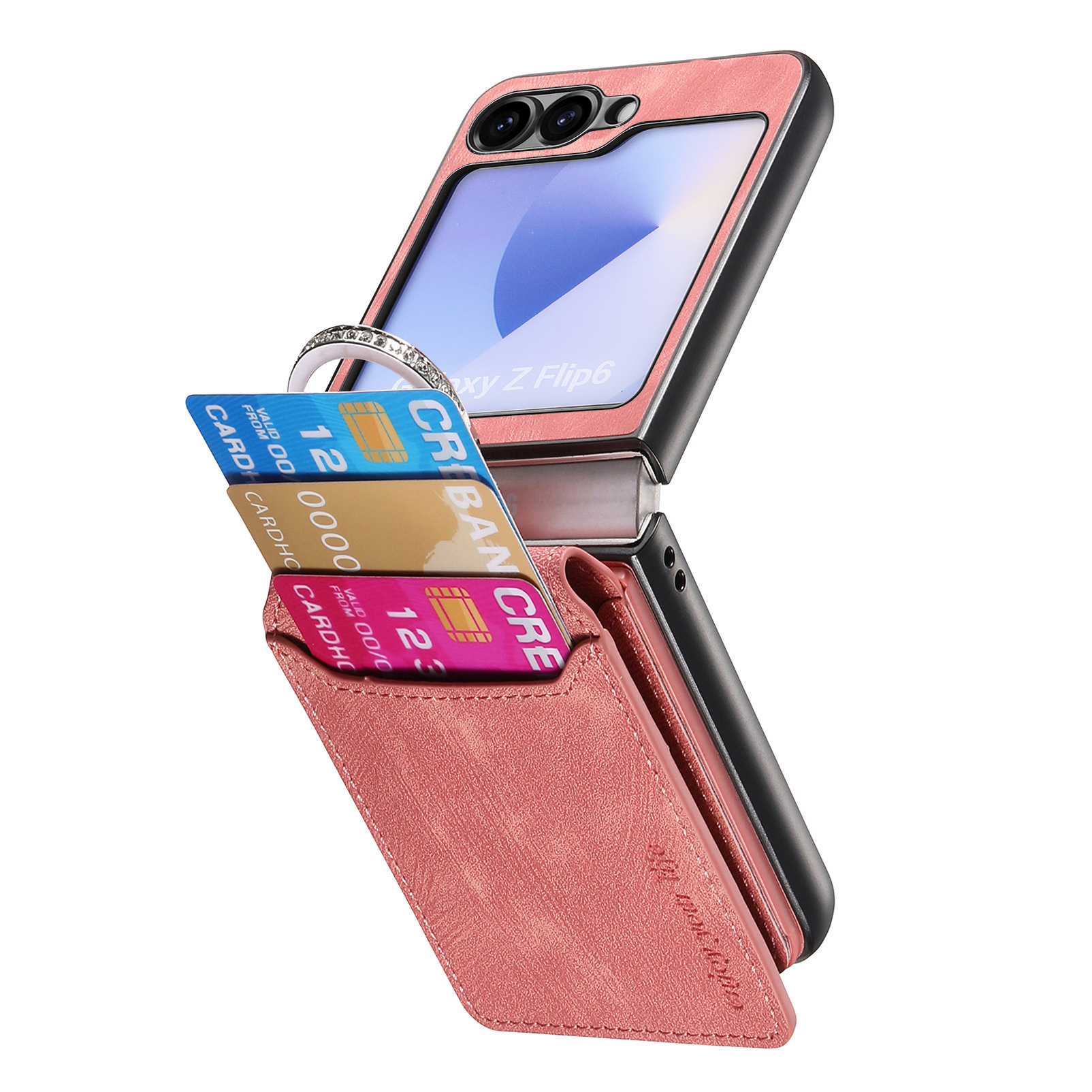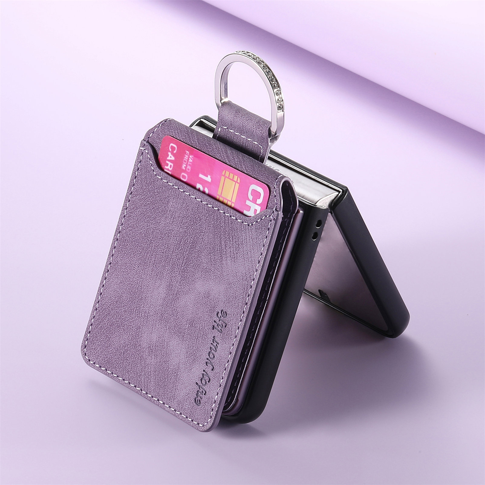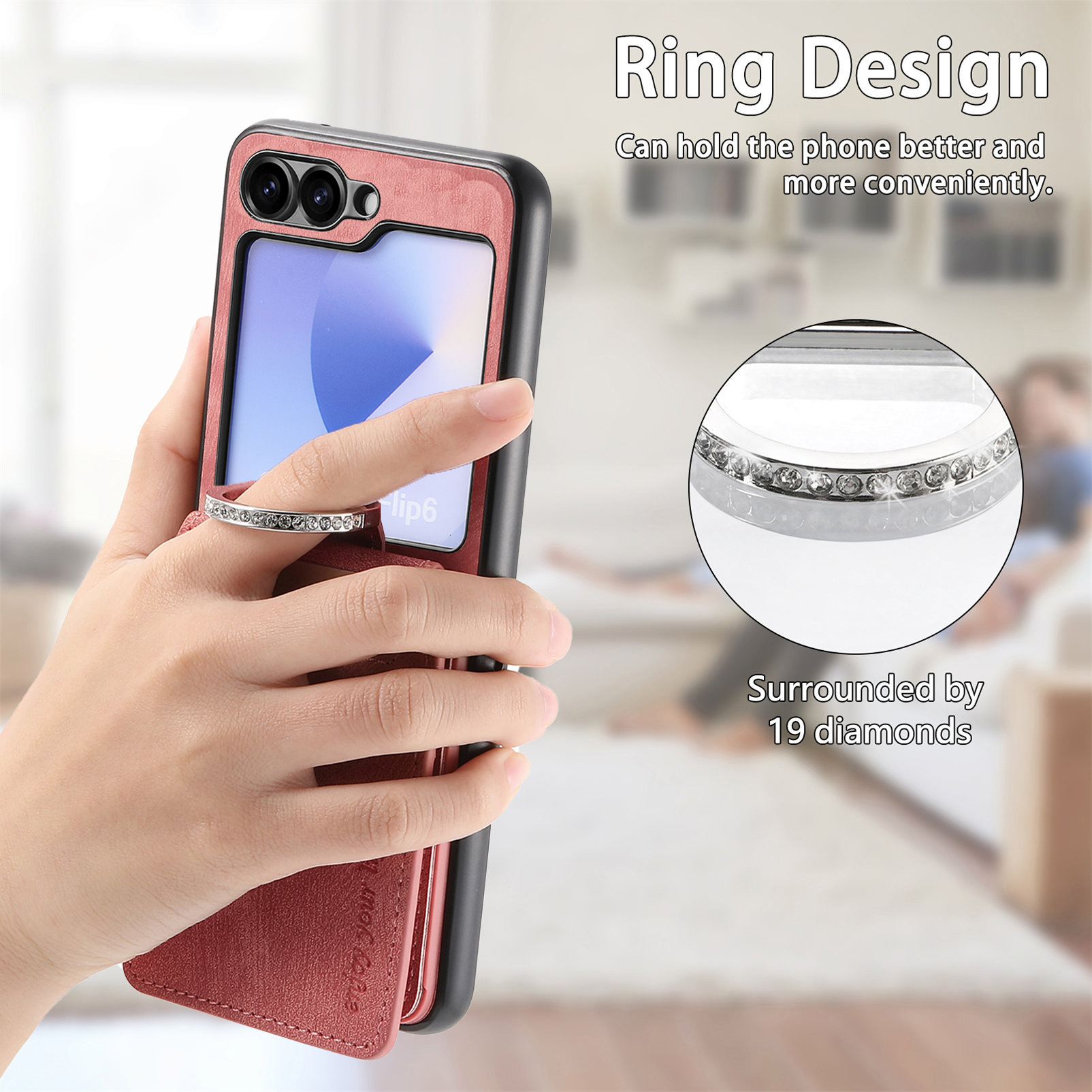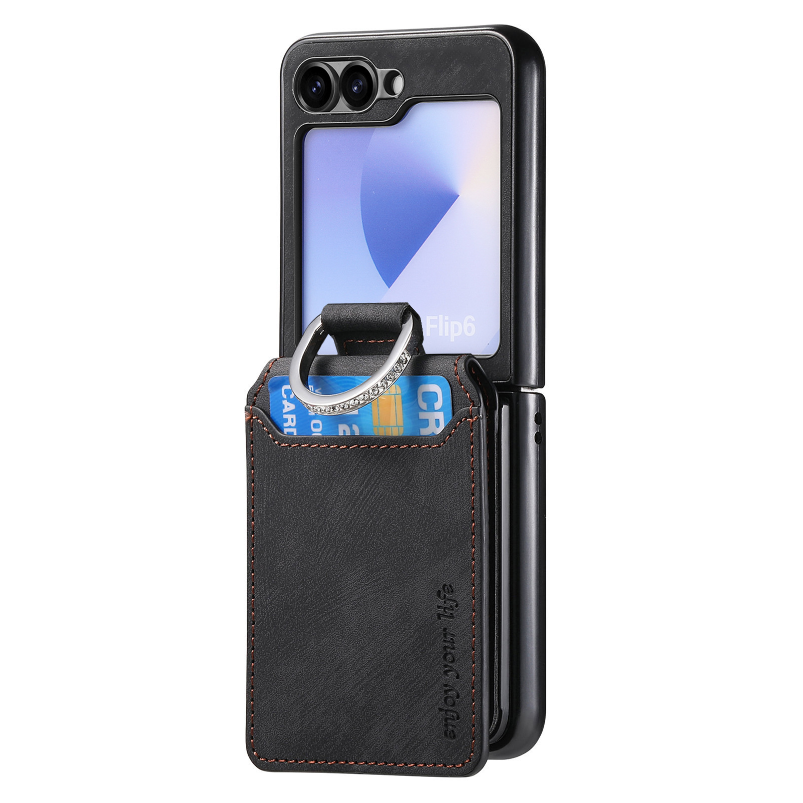 適用三星ZFlip7商務復古摺疊螢幕手機殼鑲鑽指環釦zflip7插卡皮套