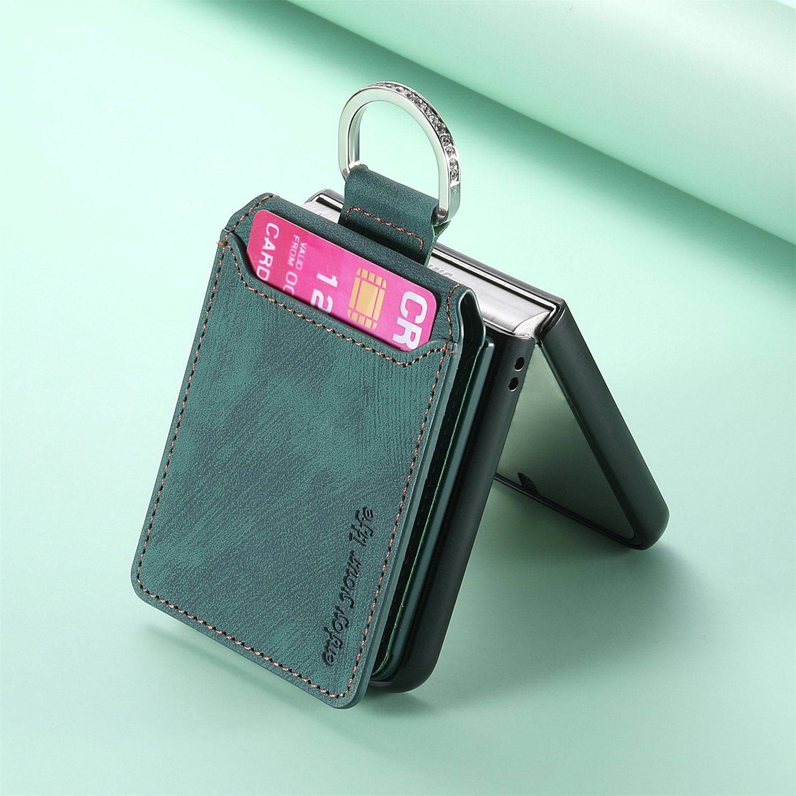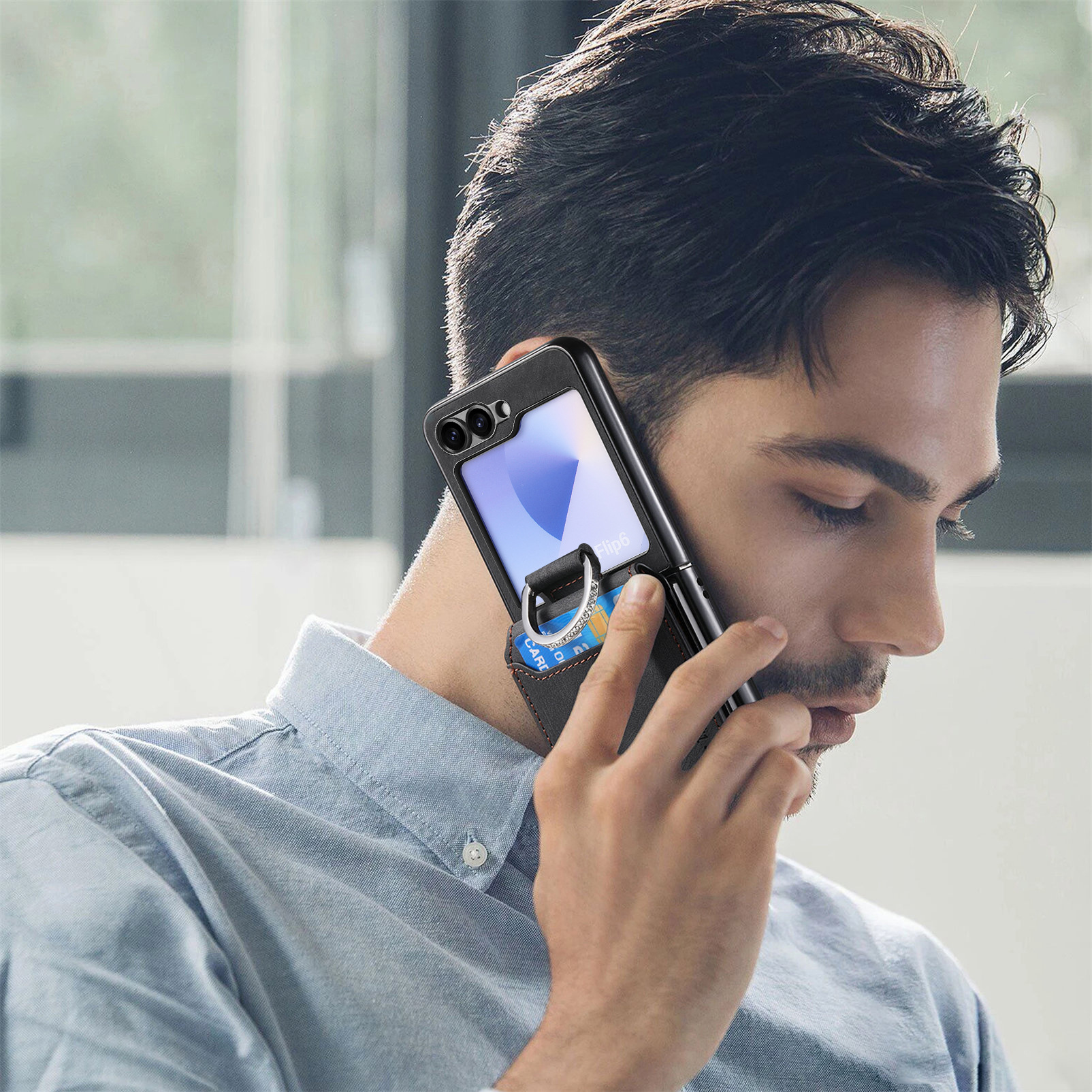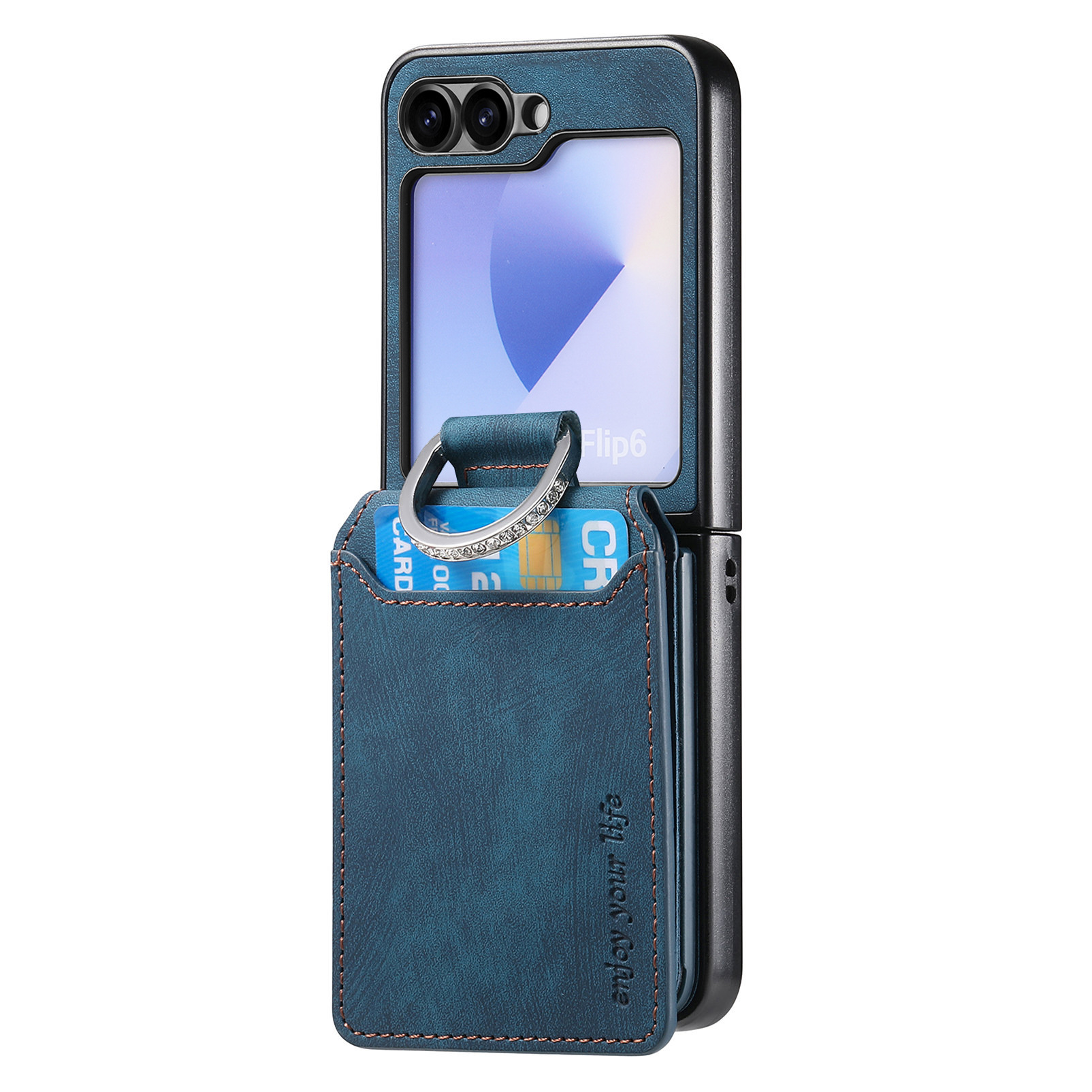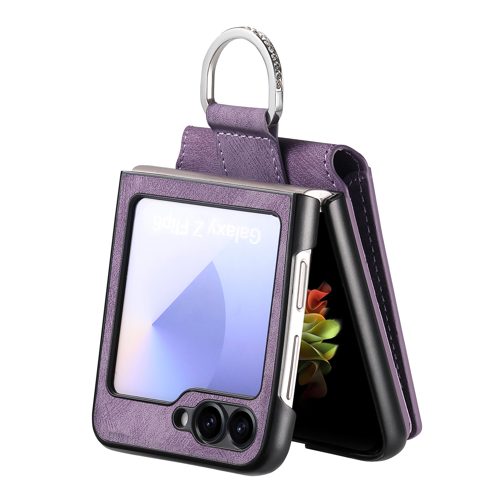 適用三星ZFlip7商務復古摺疊螢幕手機殼鑲鑽指環釦zflip7插卡皮套