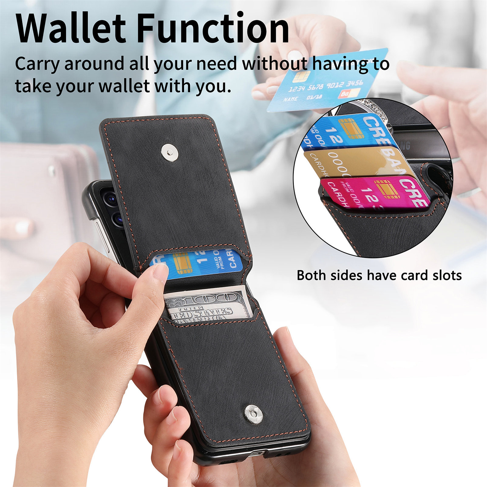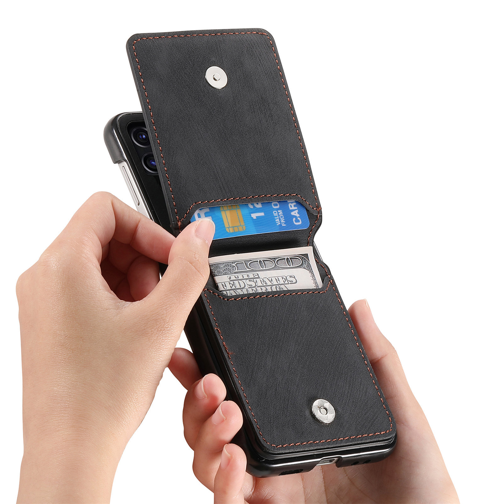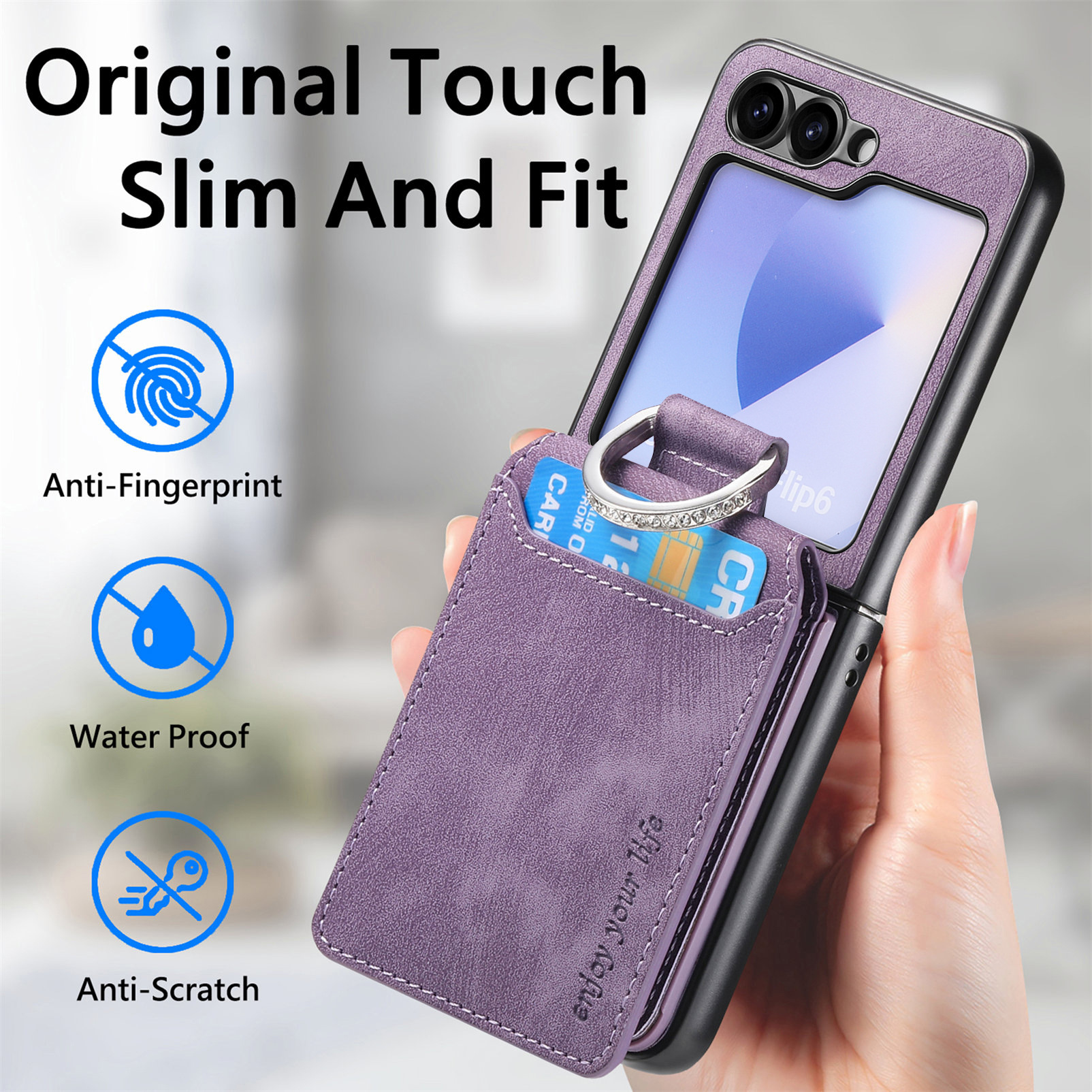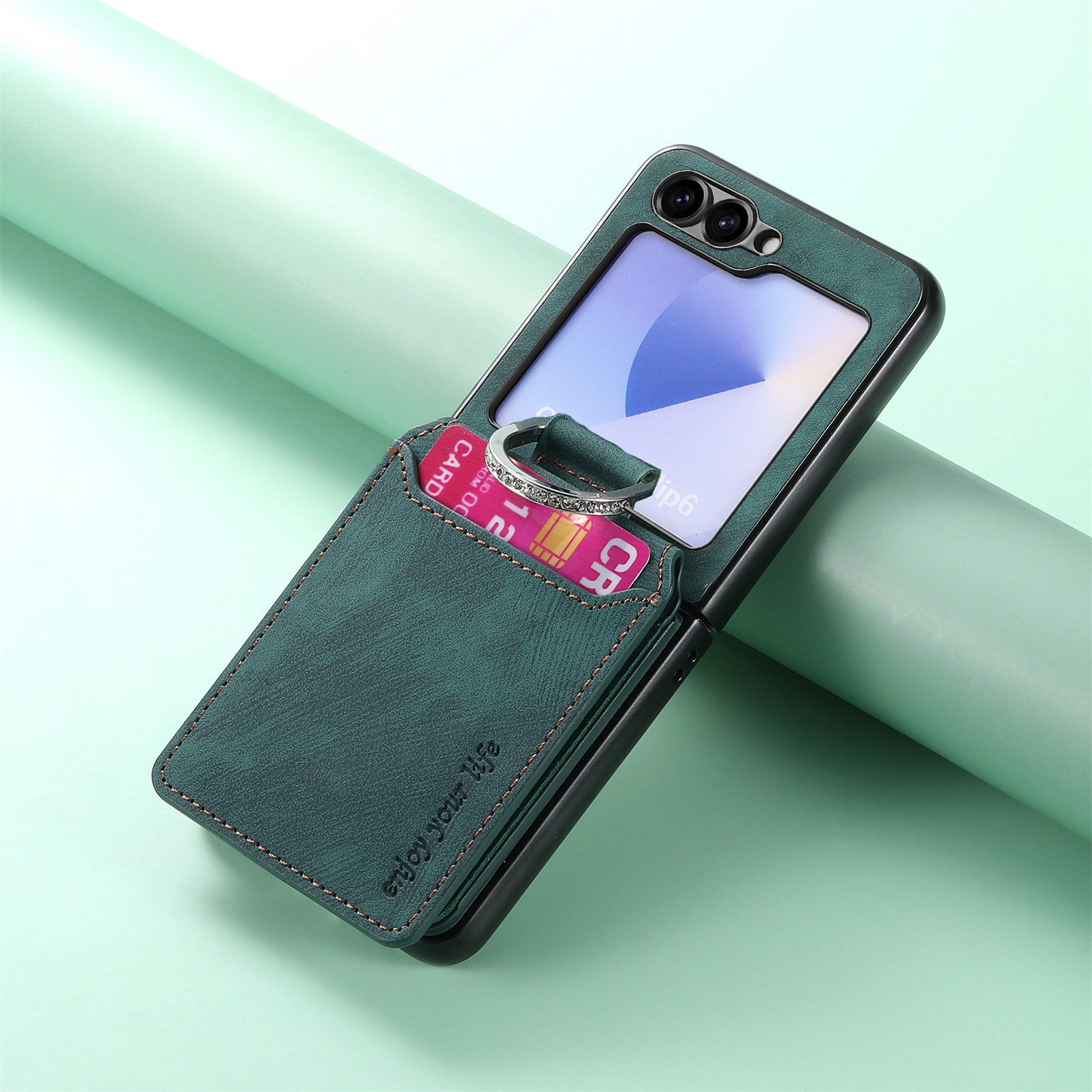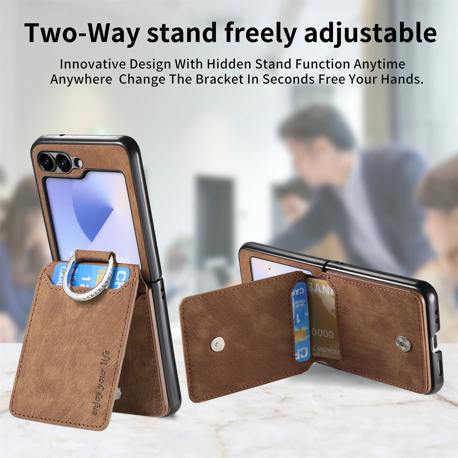 適用三星ZFlip7商務復古摺疊螢幕手機殼鑲鑽指環釦zflip7插卡皮套