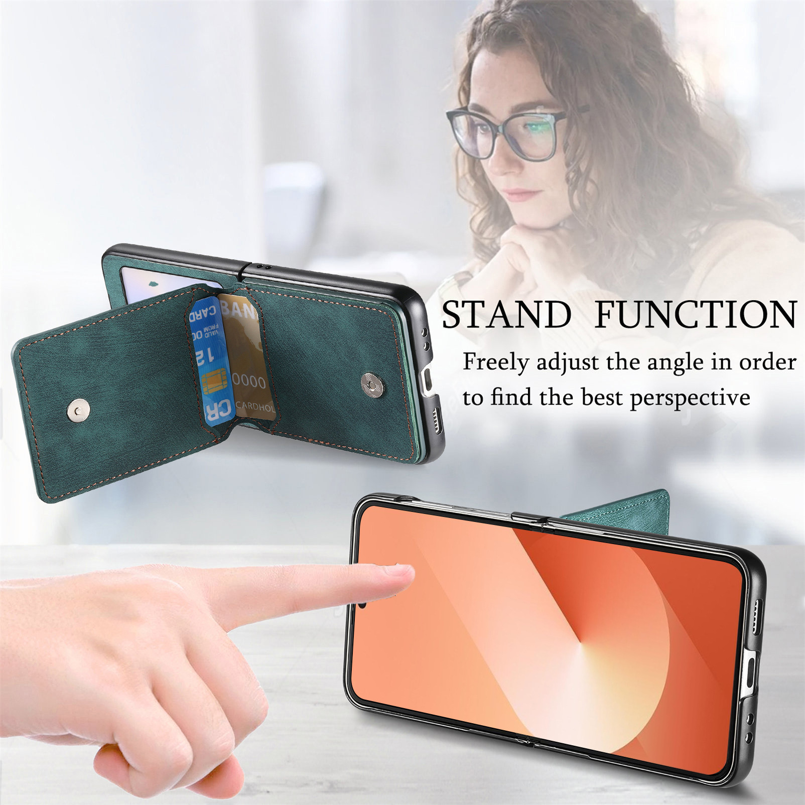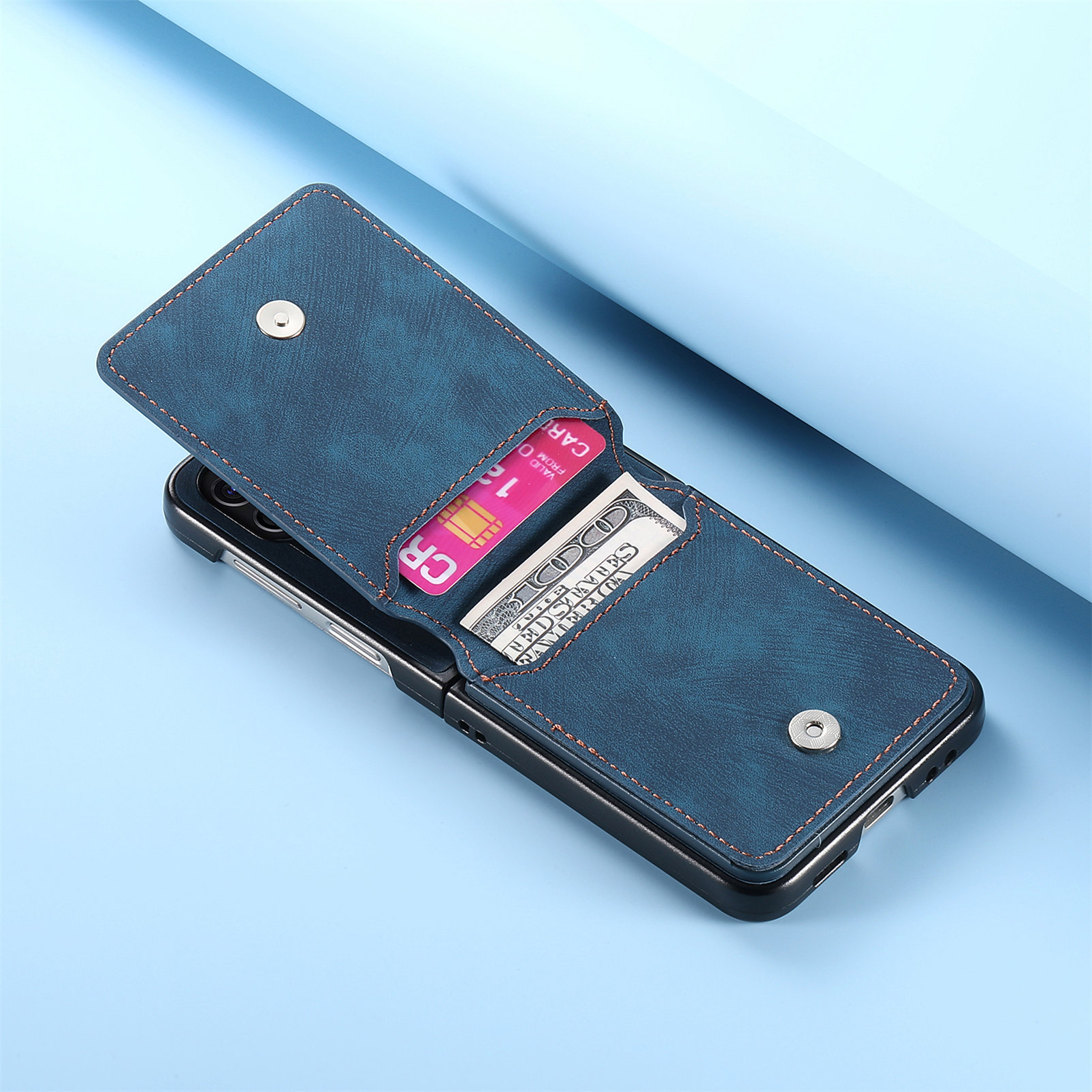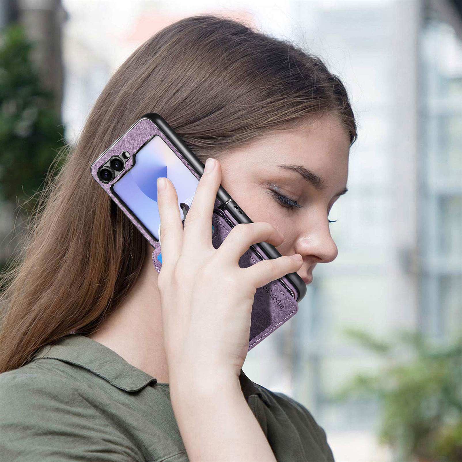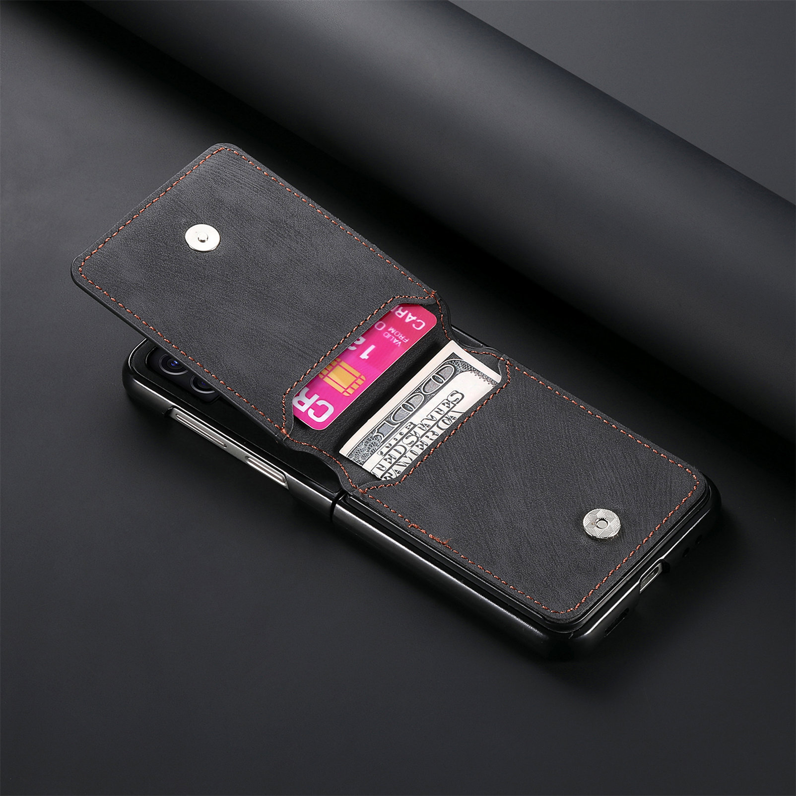 適用三星ZFlip7商務復古摺疊螢幕手機殼鑲鑽指環釦zflip7插卡皮套