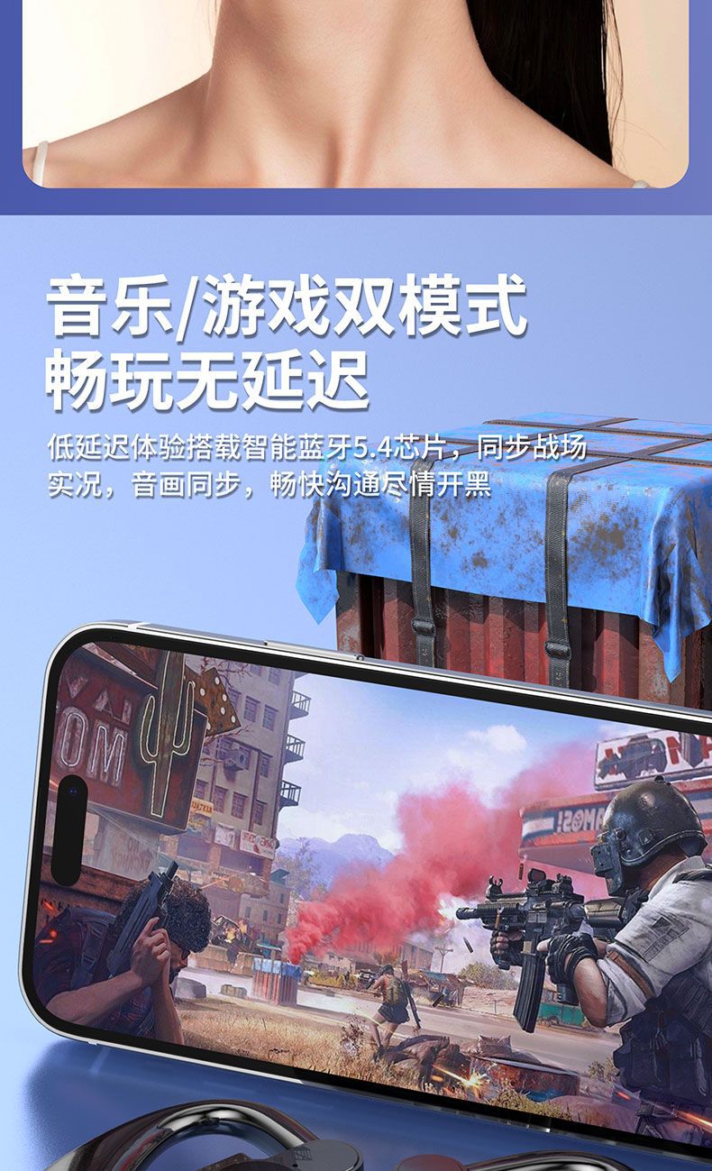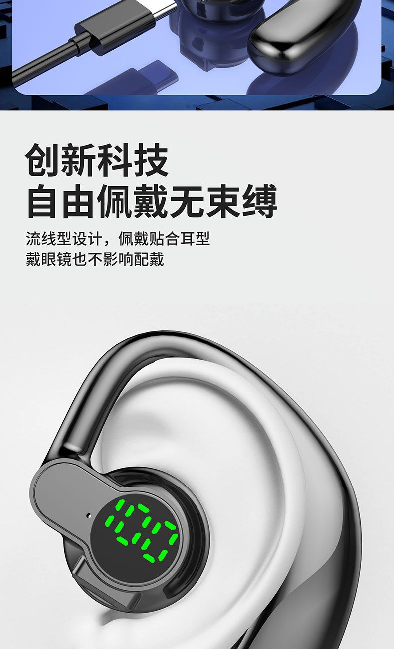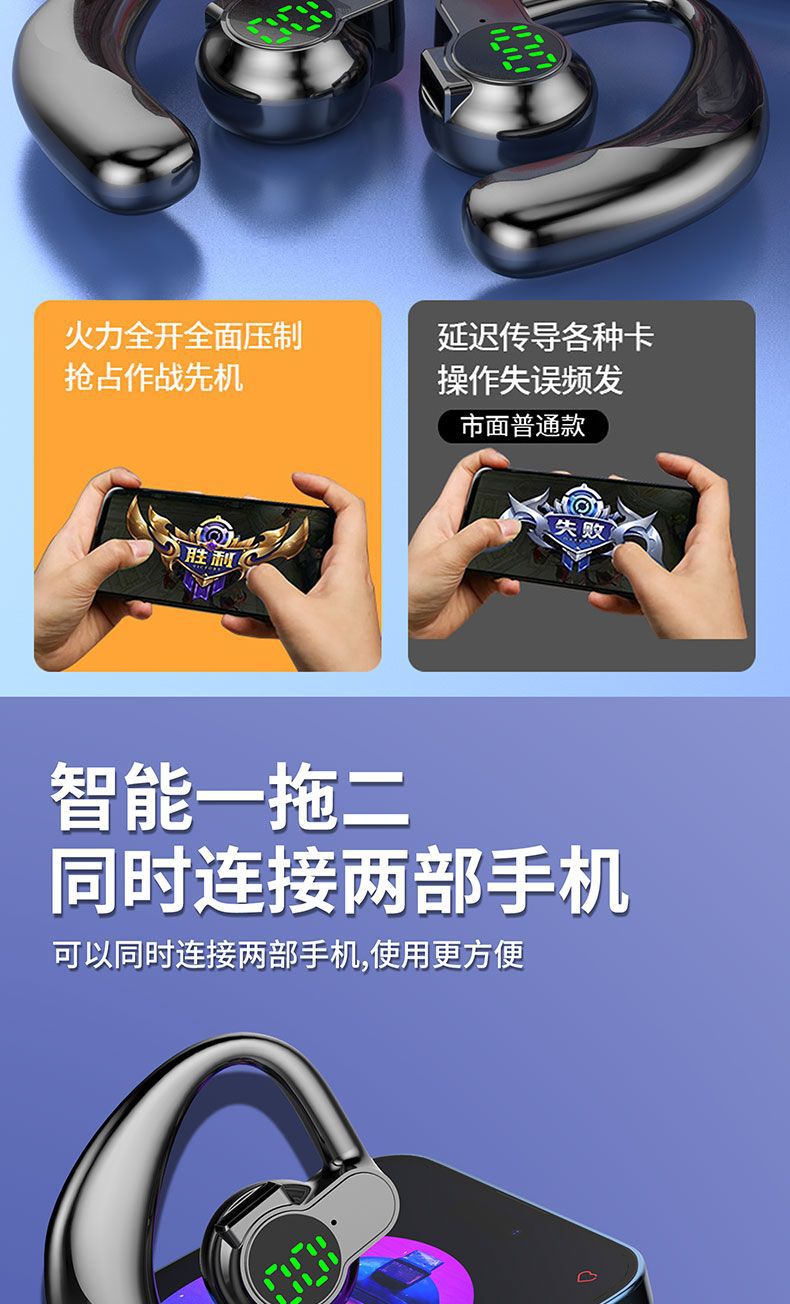 新款高音質無線藍牙耳機掛耳式可旋轉適用遊戯電競耳機