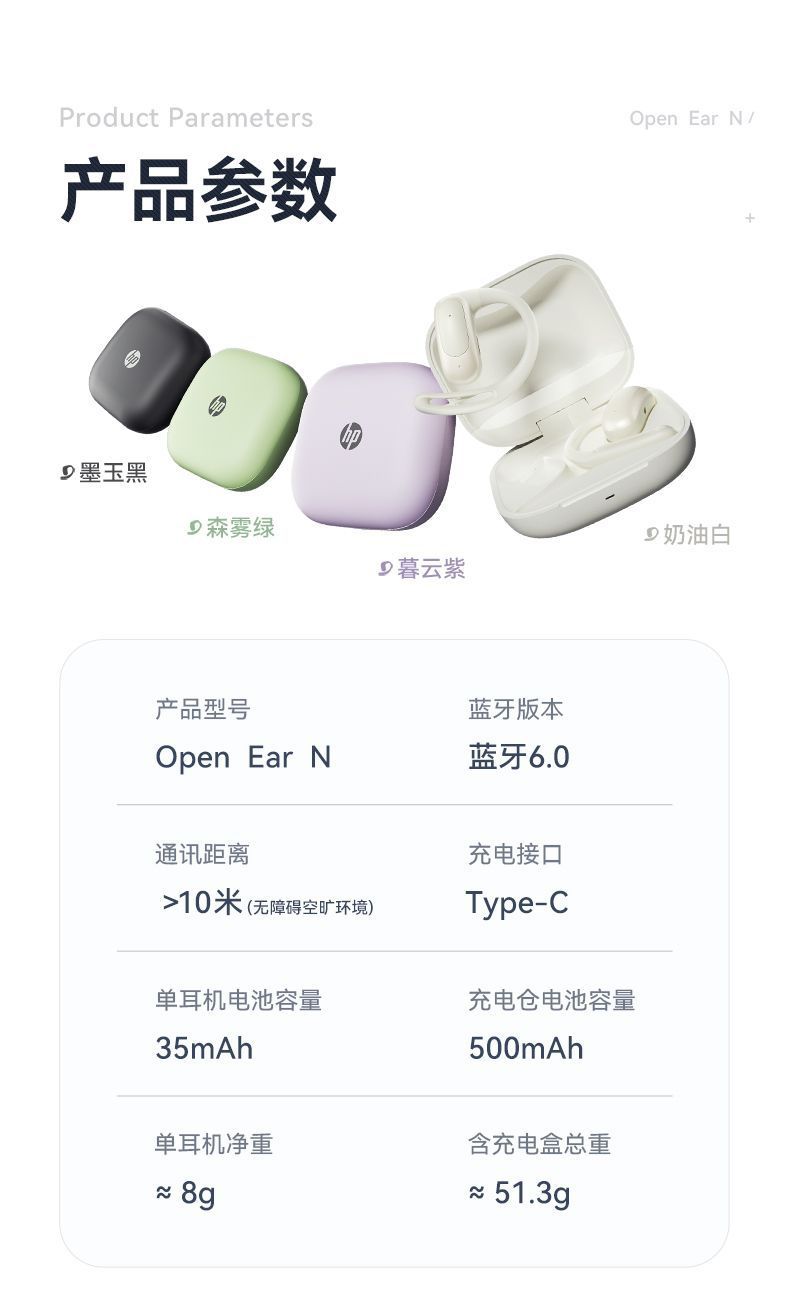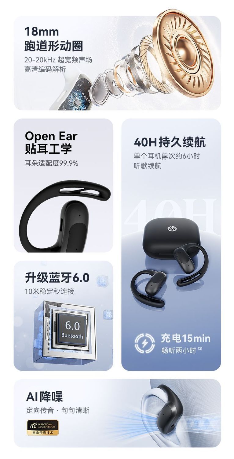 HP惠普OpenEarN無線藍牙耳機掛耳開放式久續航舒適不入耳運動商務