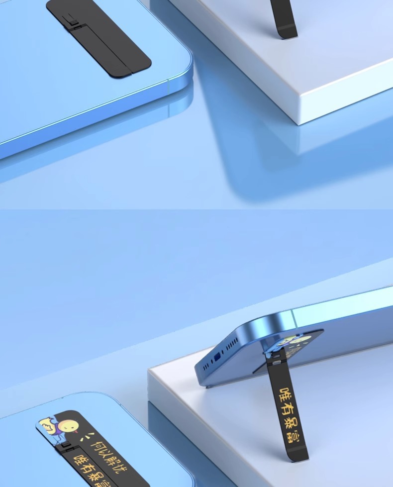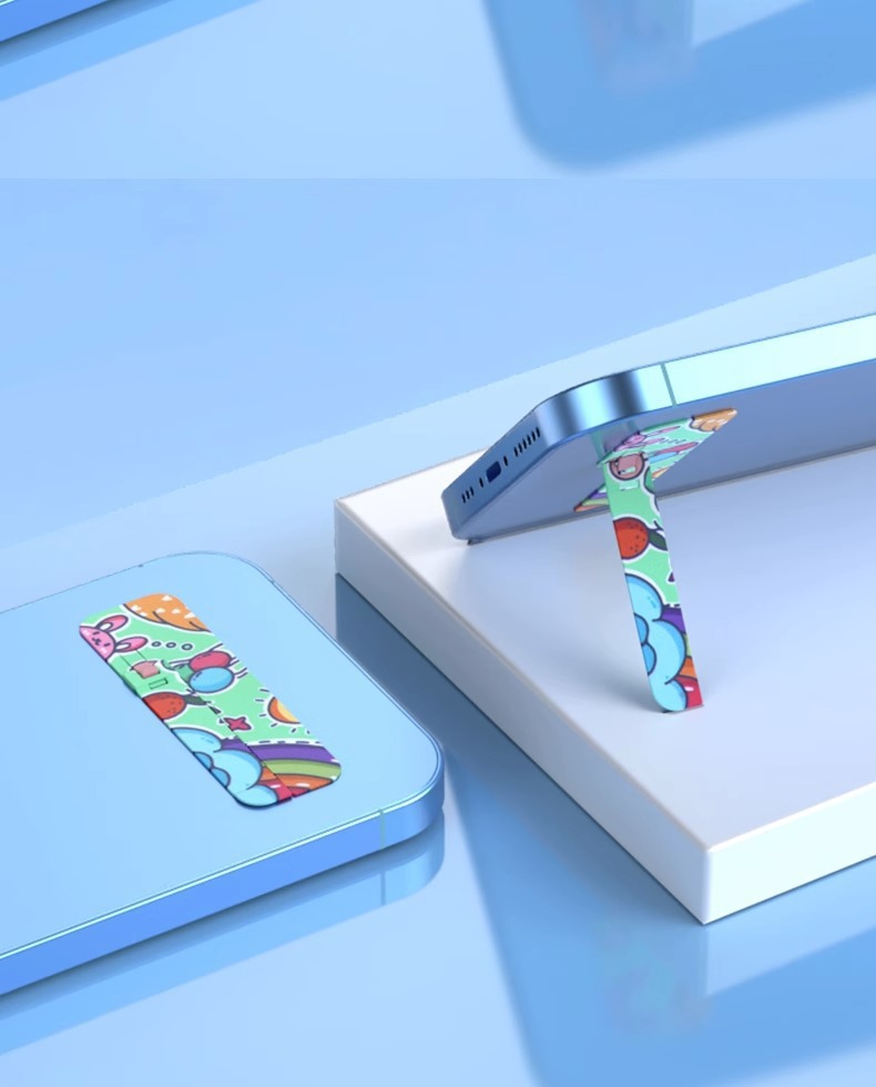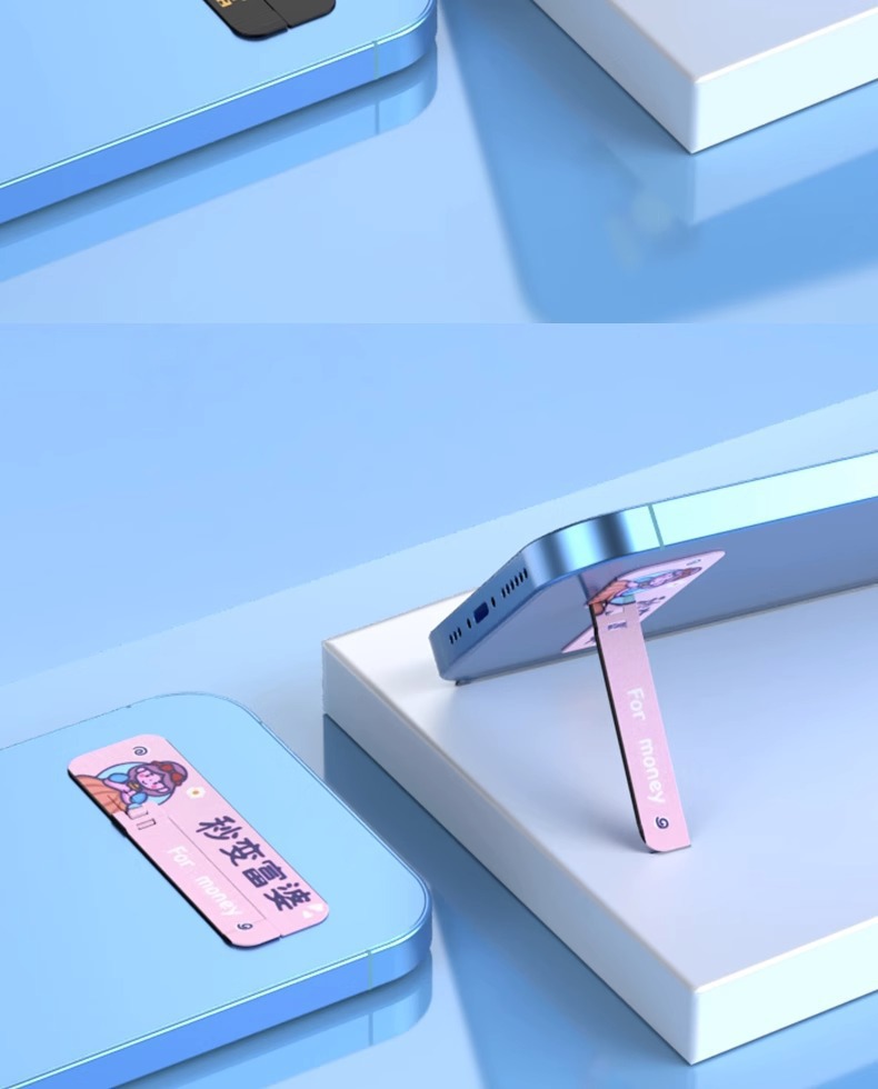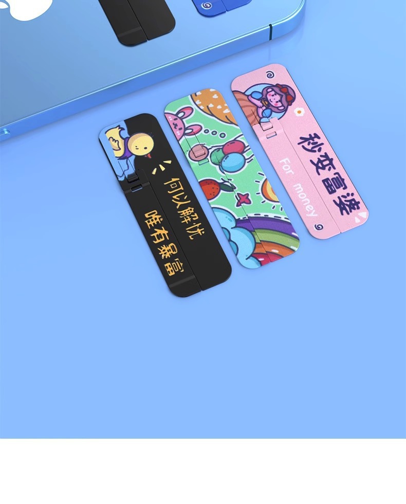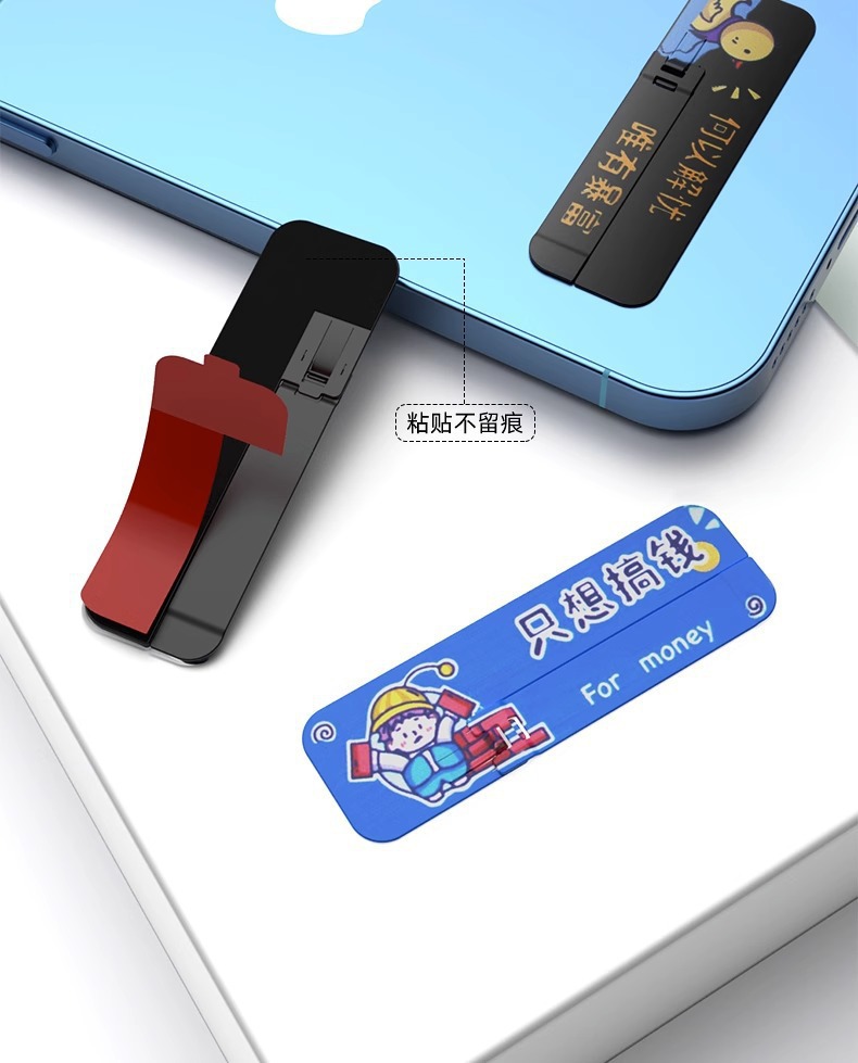 手機支架創意圖案背貼桌面支撐架子超薄款隱形一字夾金屬嬾人隨身