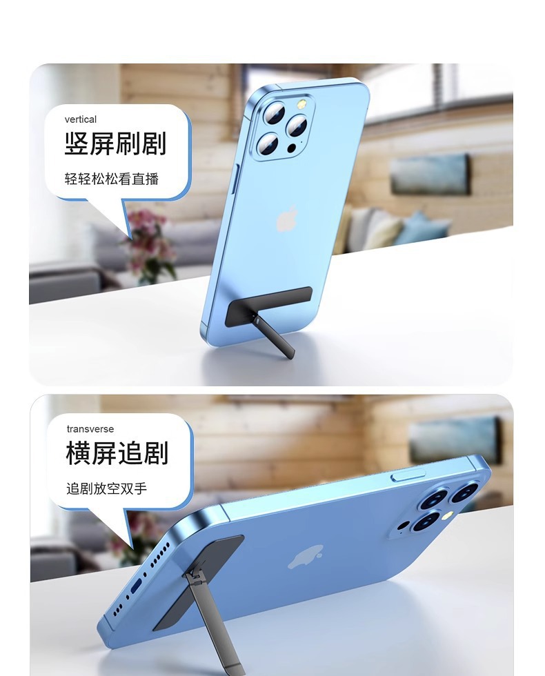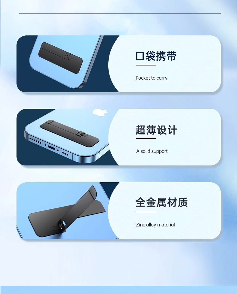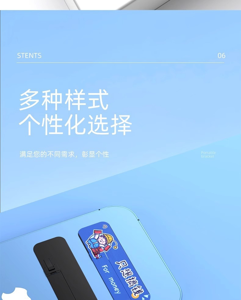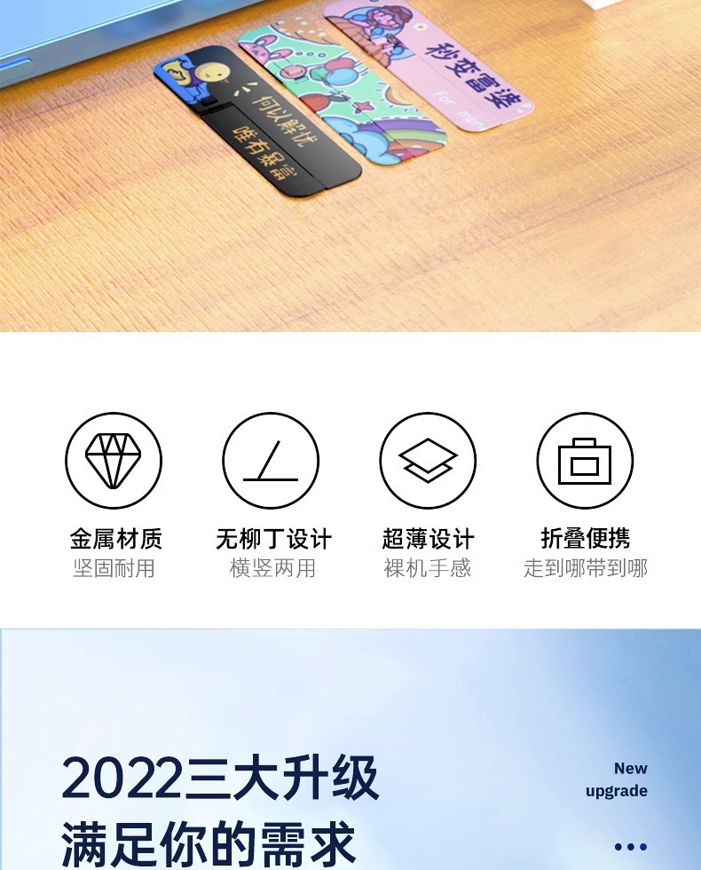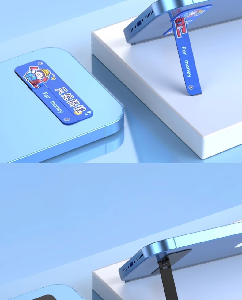 手機支架創意圖案背貼桌面支撐架子超薄款隱形一字夾金屬嬾人隨身