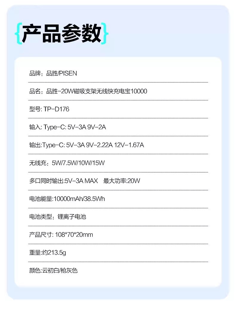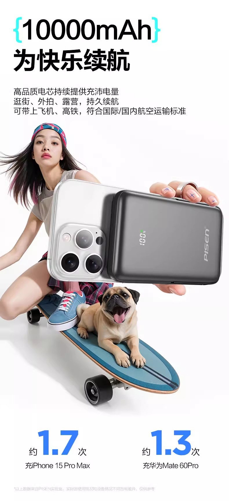 品勝磁吸支架行動電源22.5w快充無線迷你1萬安培定15製懶人行動電源