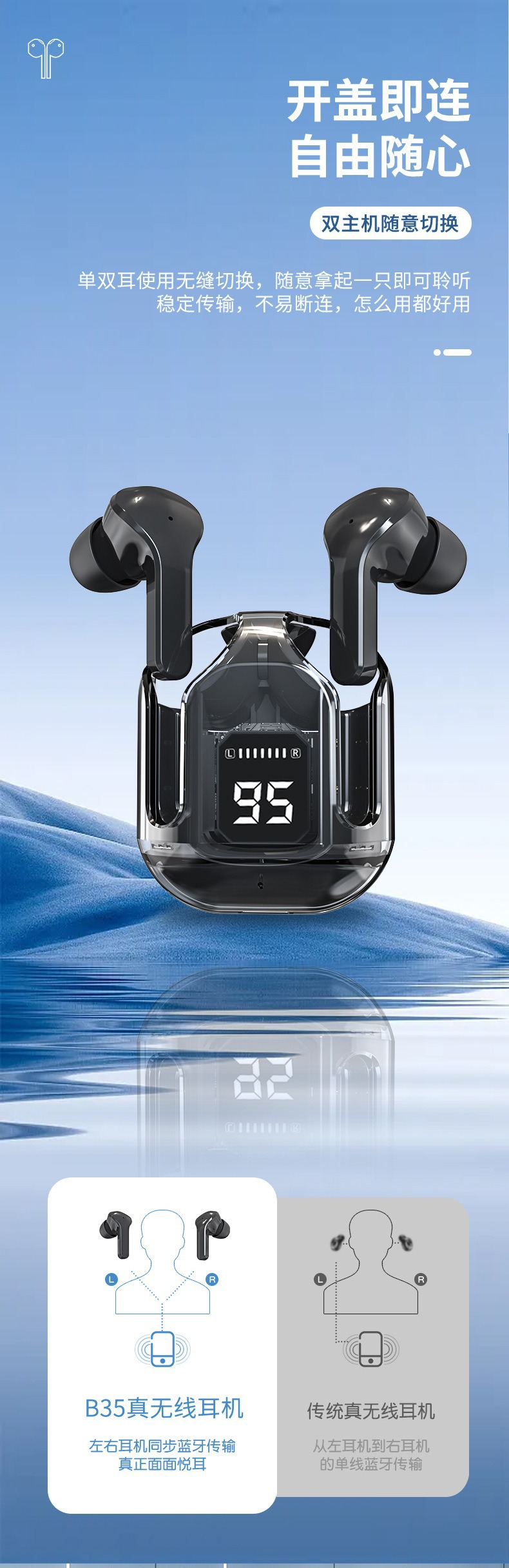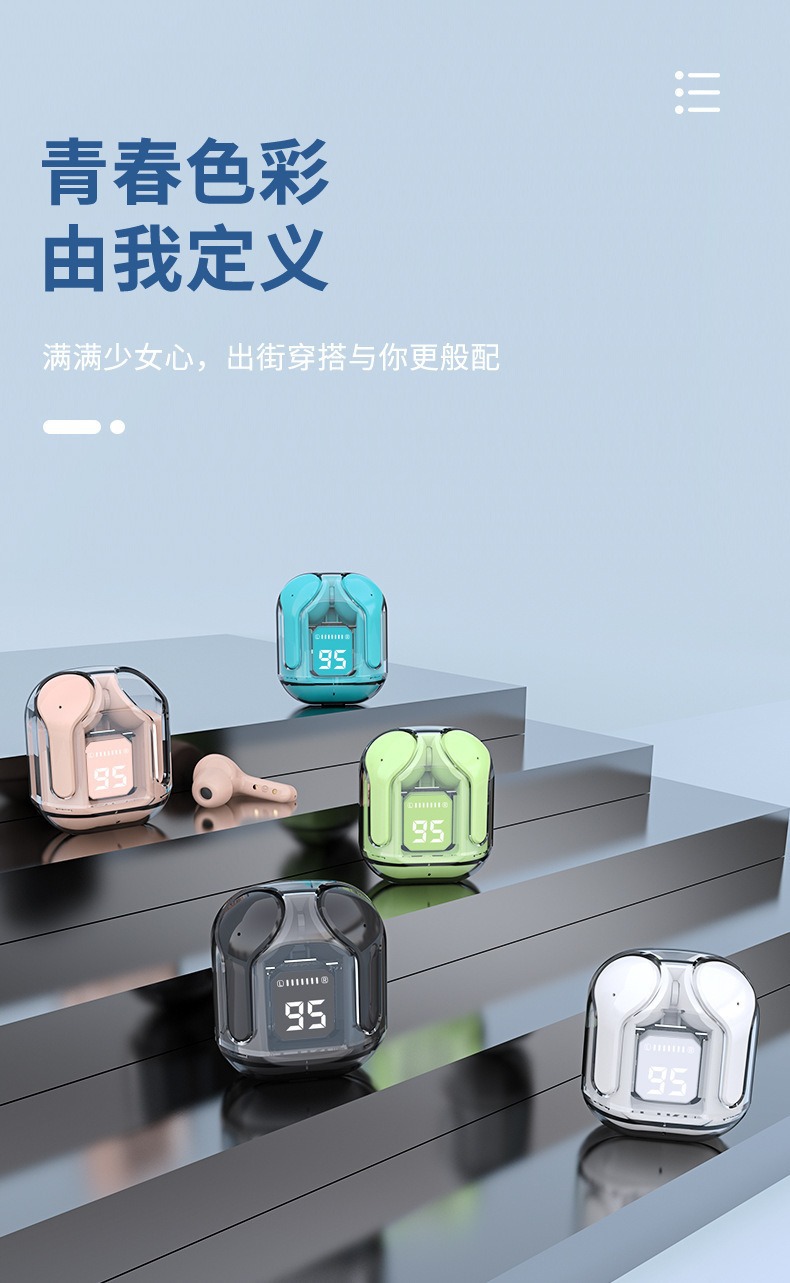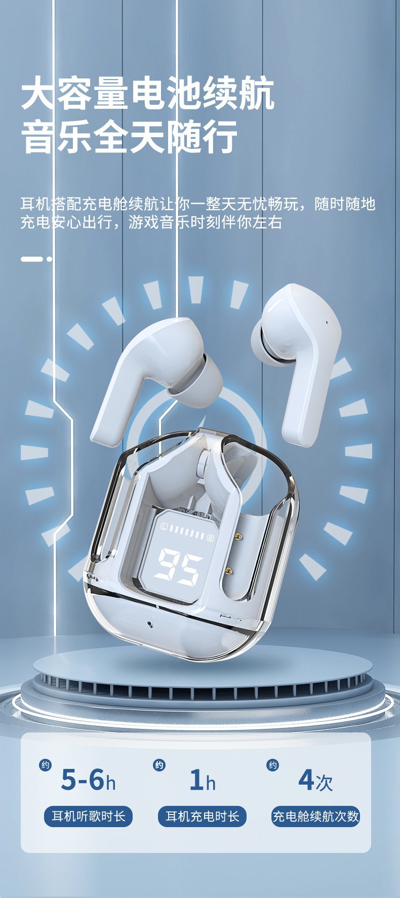 數顯高顔值透明一代藍牙耳機二代無線透明入耳式降噪二代藍牙耳機