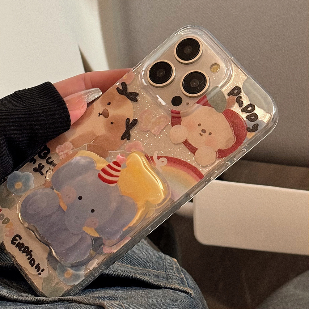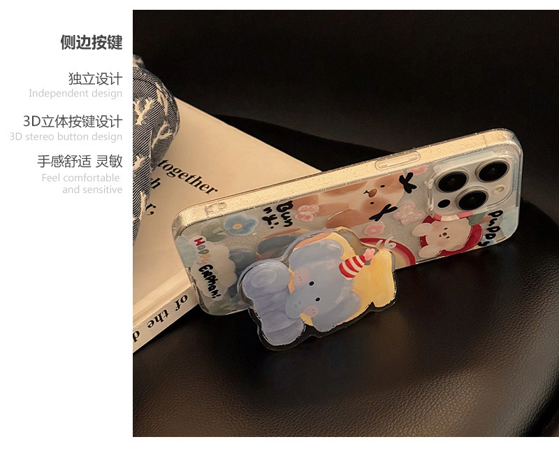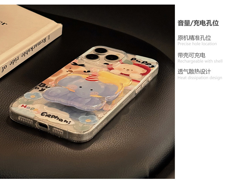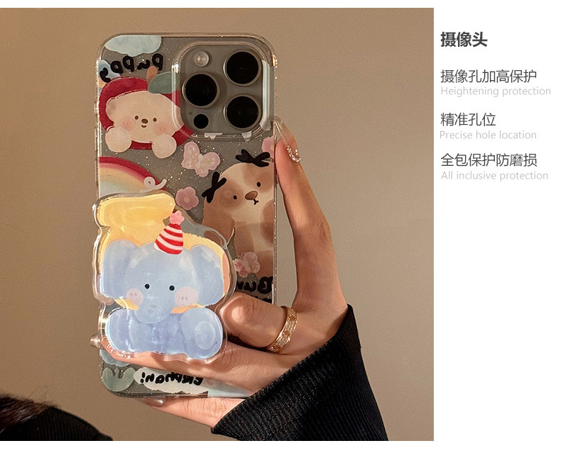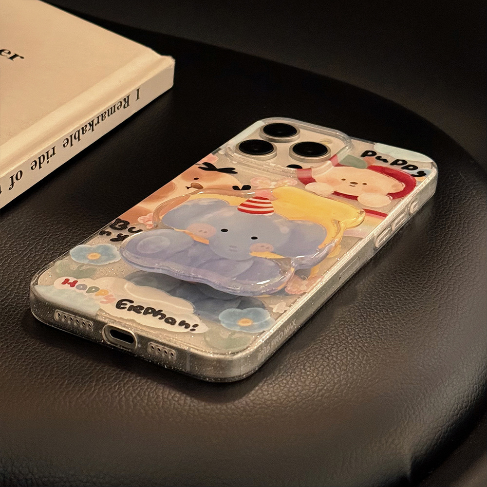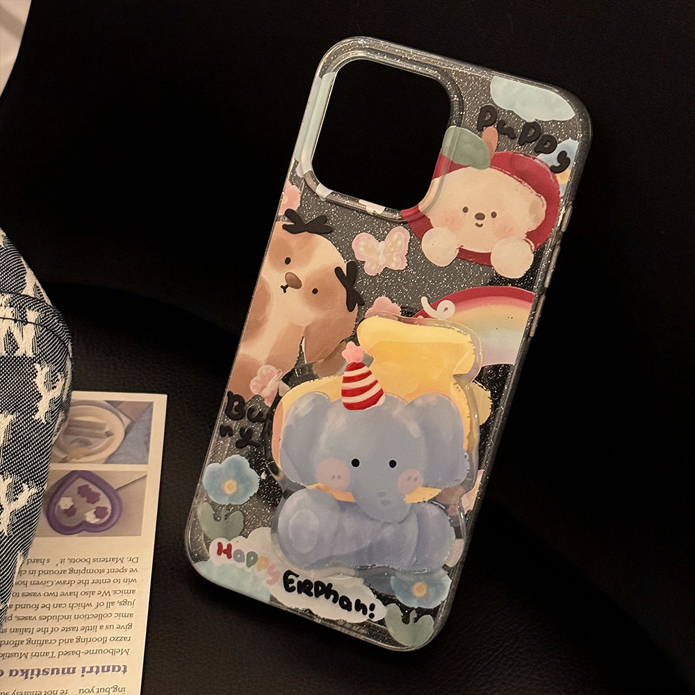可愛塗鴉大象支架蘋果15手機殼16閃粉iphone14pro 適用原創12塗鴉
