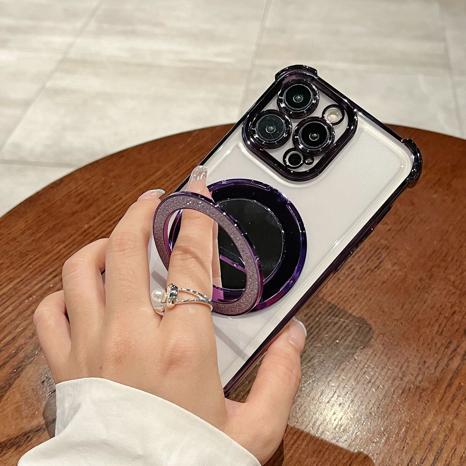 一體磁吸支架適用蘋果16手機殼iphone15promax帶鏡子13新款12女11