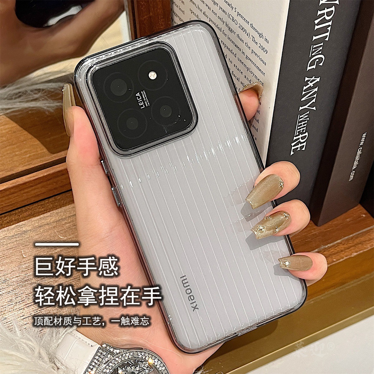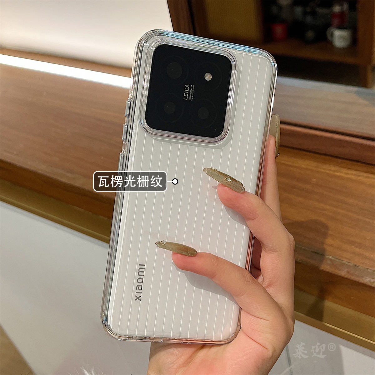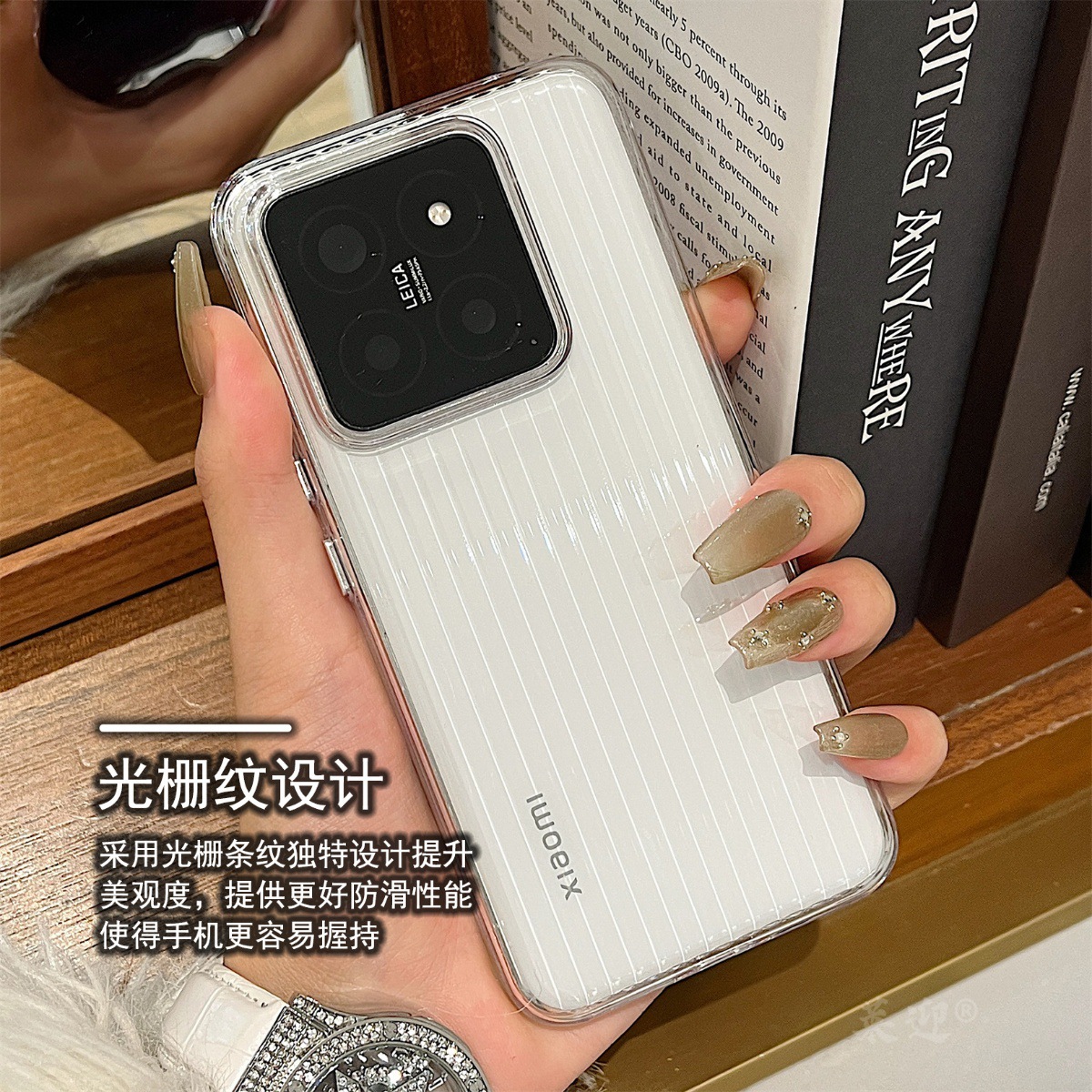 冰晶瓦楞光柵適用小米15手機殼15pro透明14pro硬殼保護套行李箱pc
