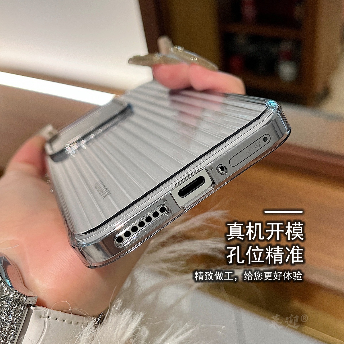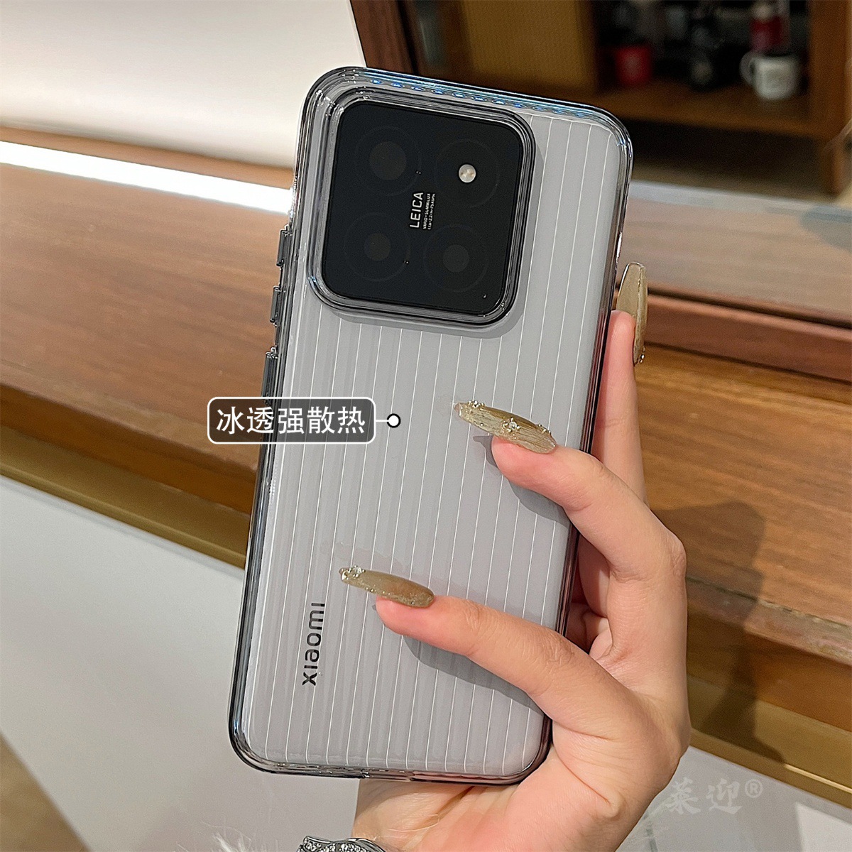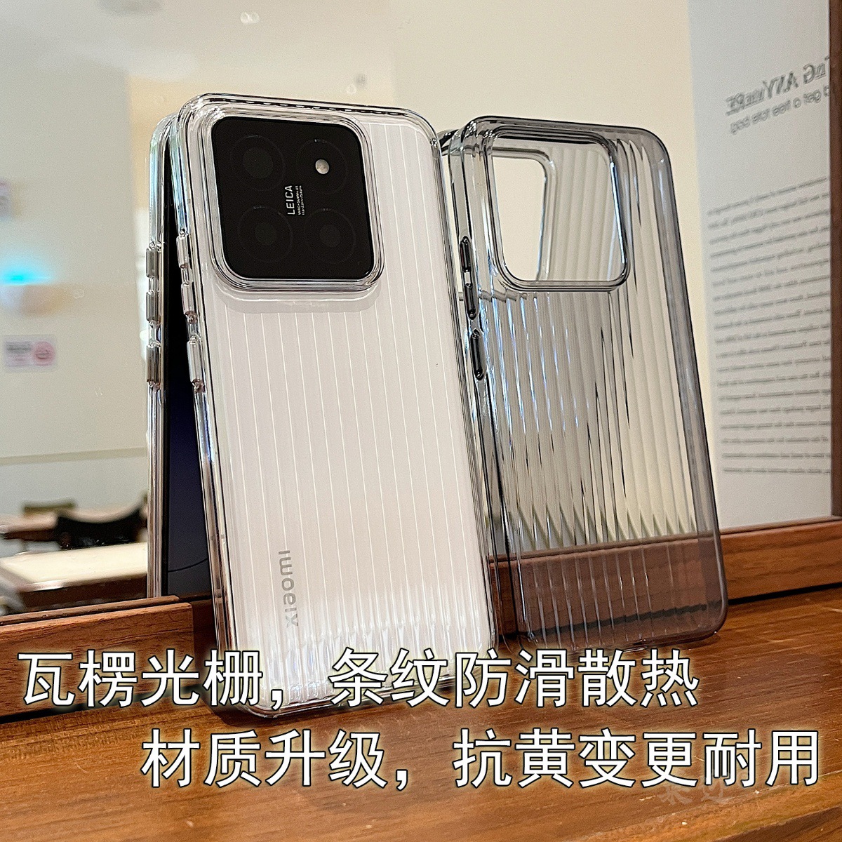 冰晶瓦楞光柵適用小米15手機殼15pro透明14pro硬殼保護套行李箱pc
