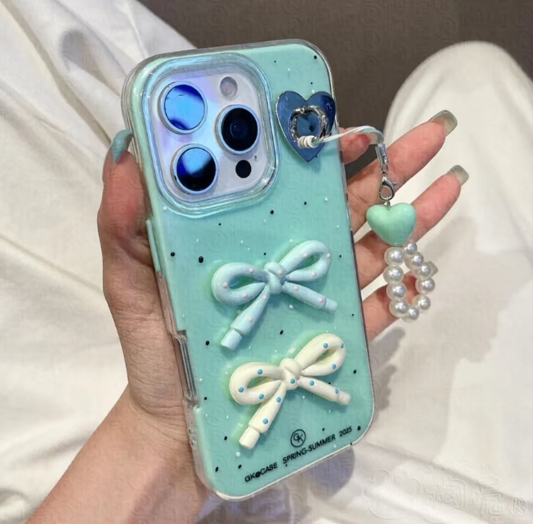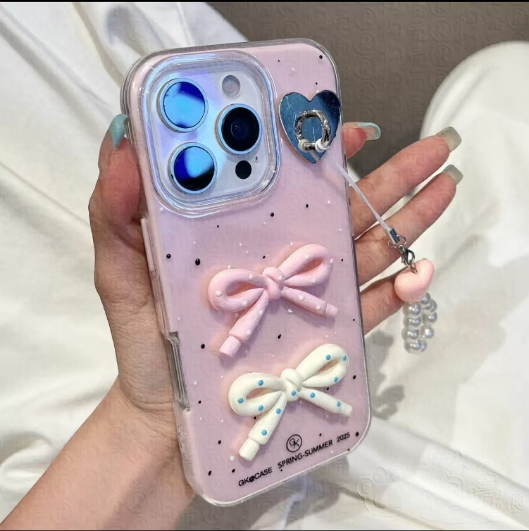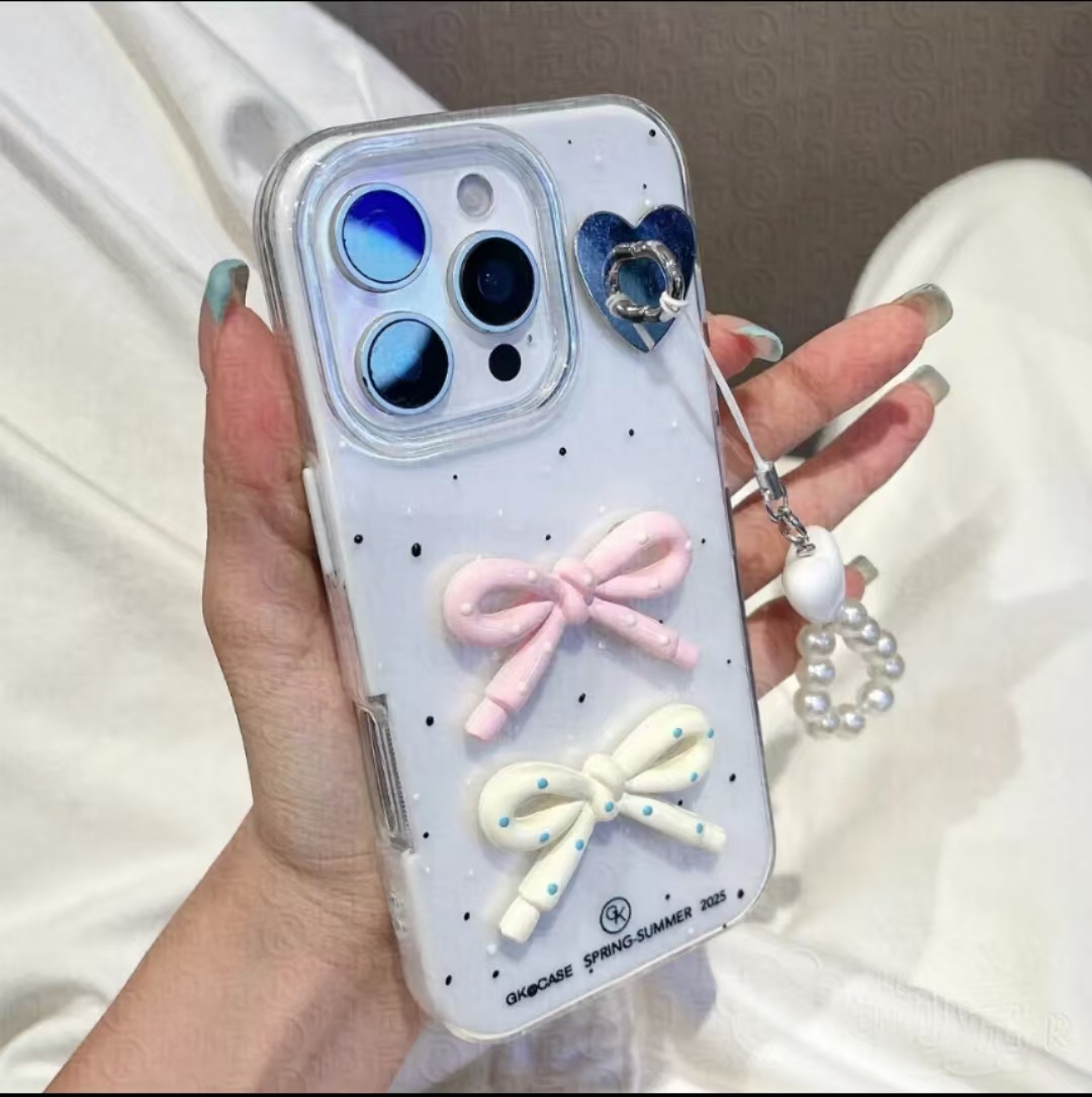 ins韓風蝴蝶結掛墜適用蘋果16promax手機殼15pro新款14女13/12/11