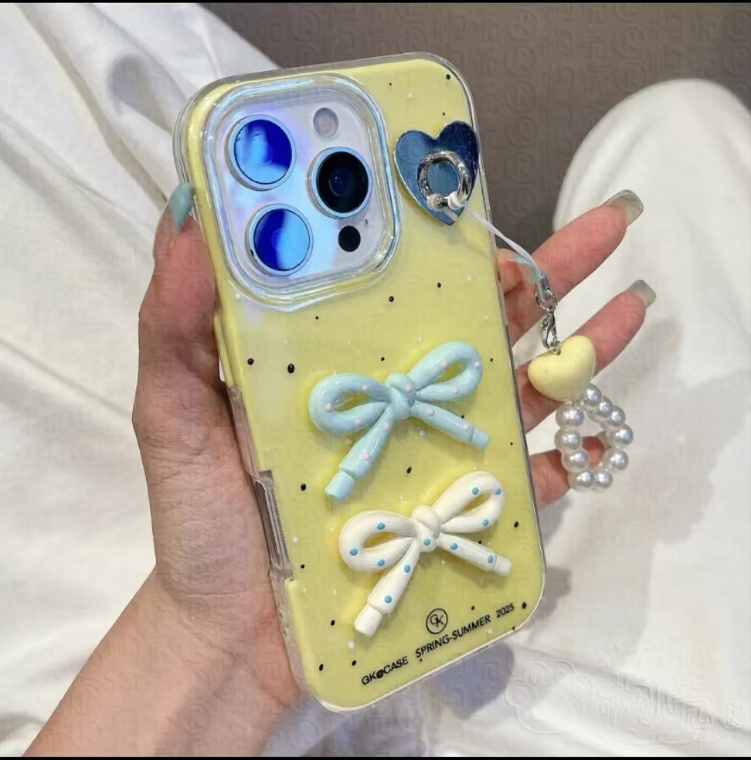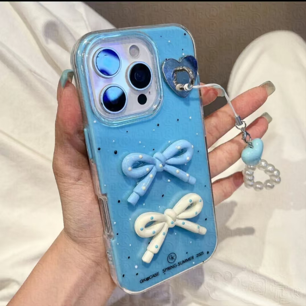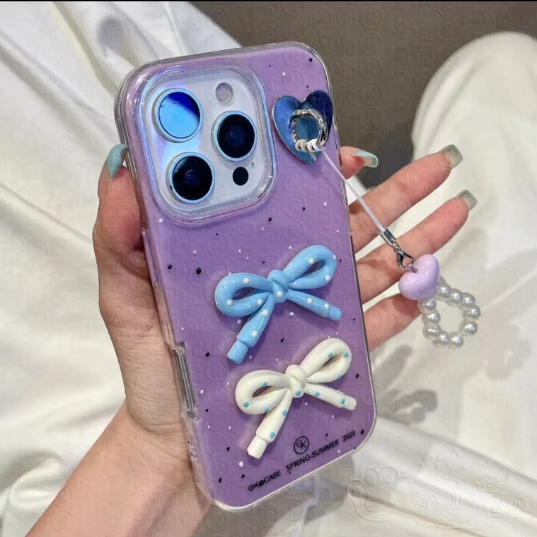 ins韓風蝴蝶結掛墜適用蘋果16promax手機殼15pro新款14女13/12/11