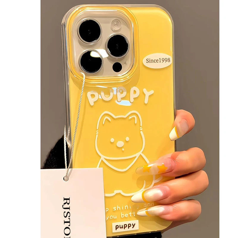 可愛線條小狗適用蘋果16手機殼iphone15保護套14防摔13pro高級感