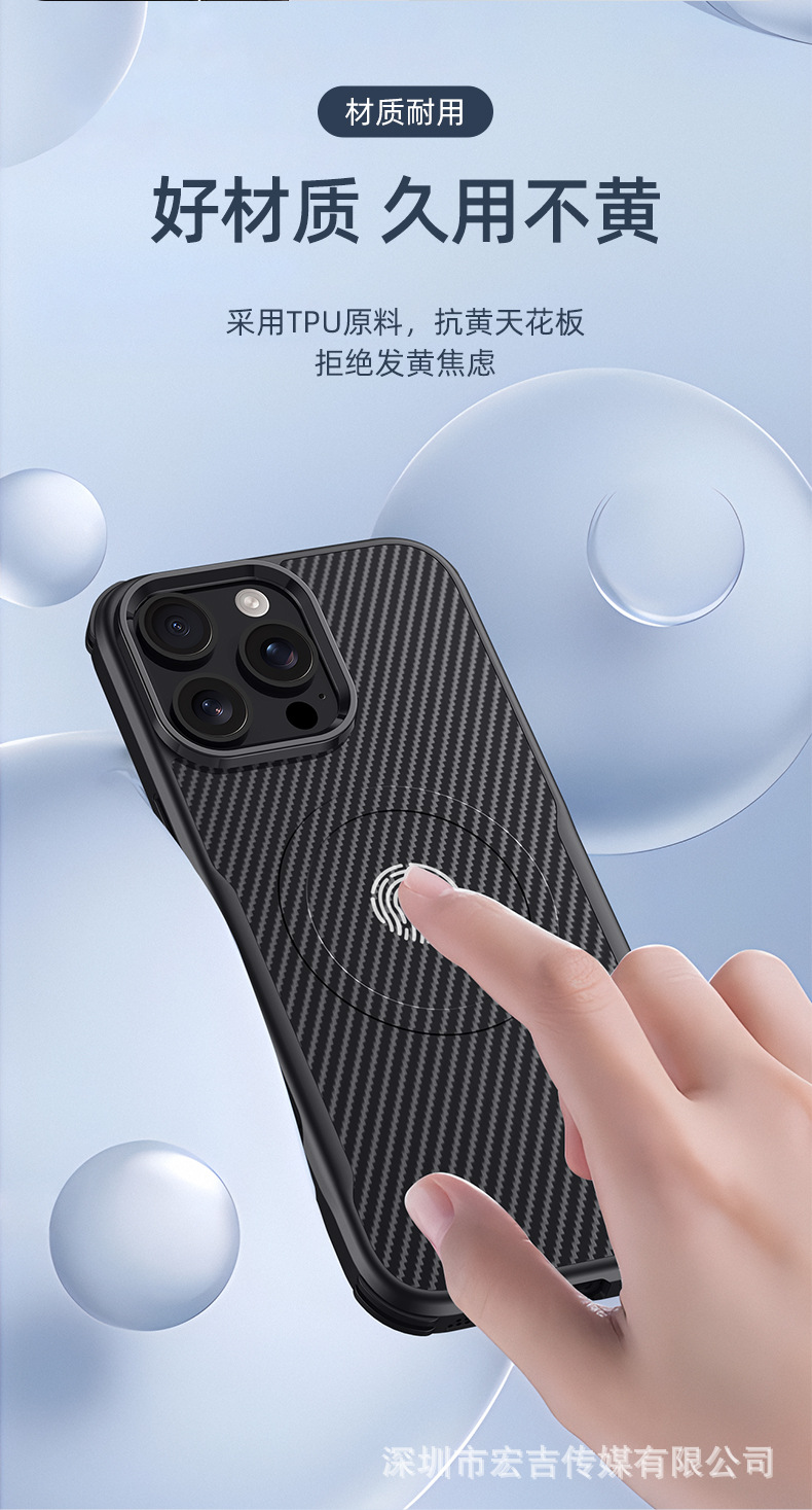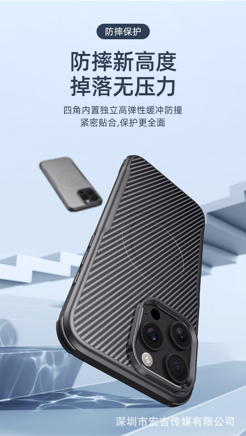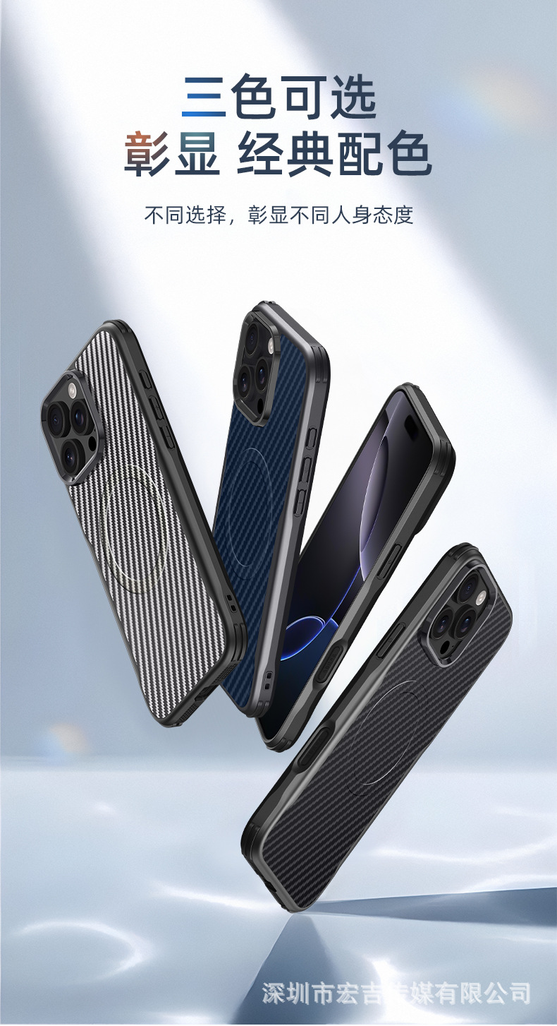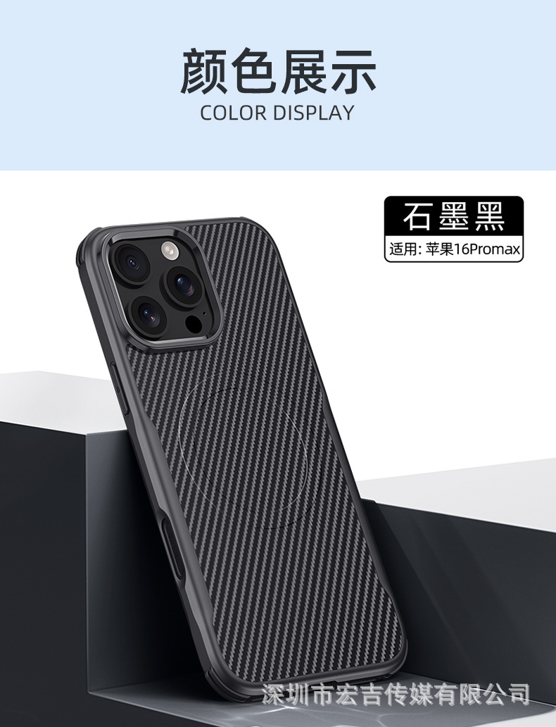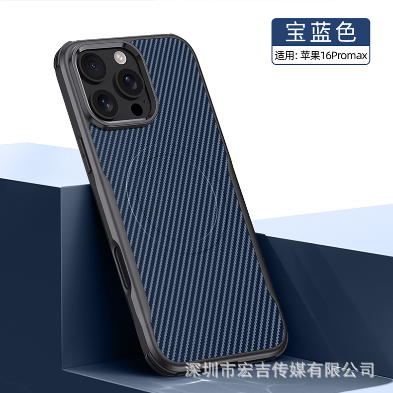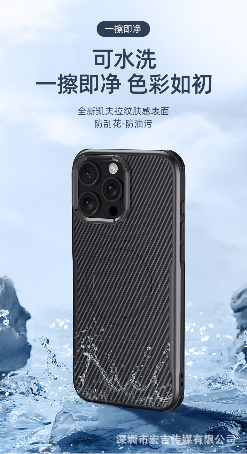 適用iPhone16ProMax刀鋒凱夫拉紋磁吸手機殼蘋果15四角防摔保護套