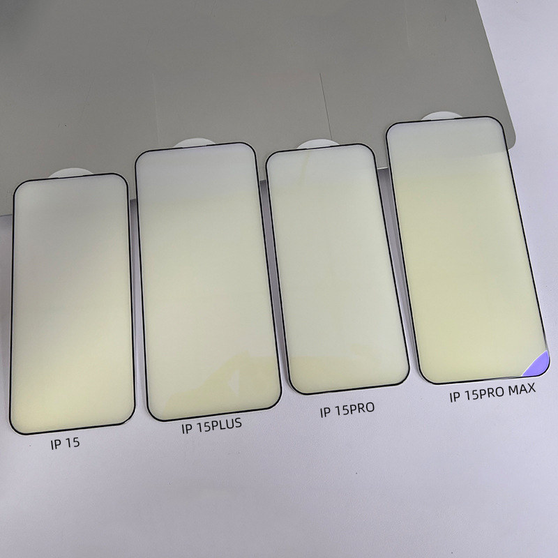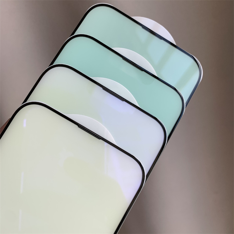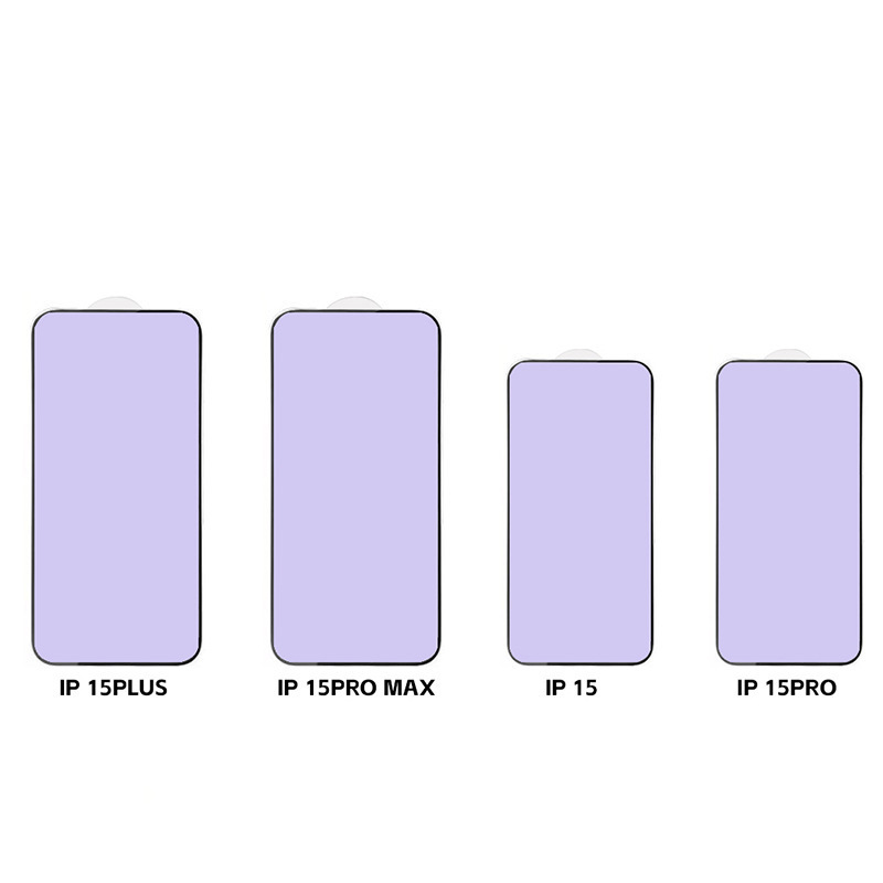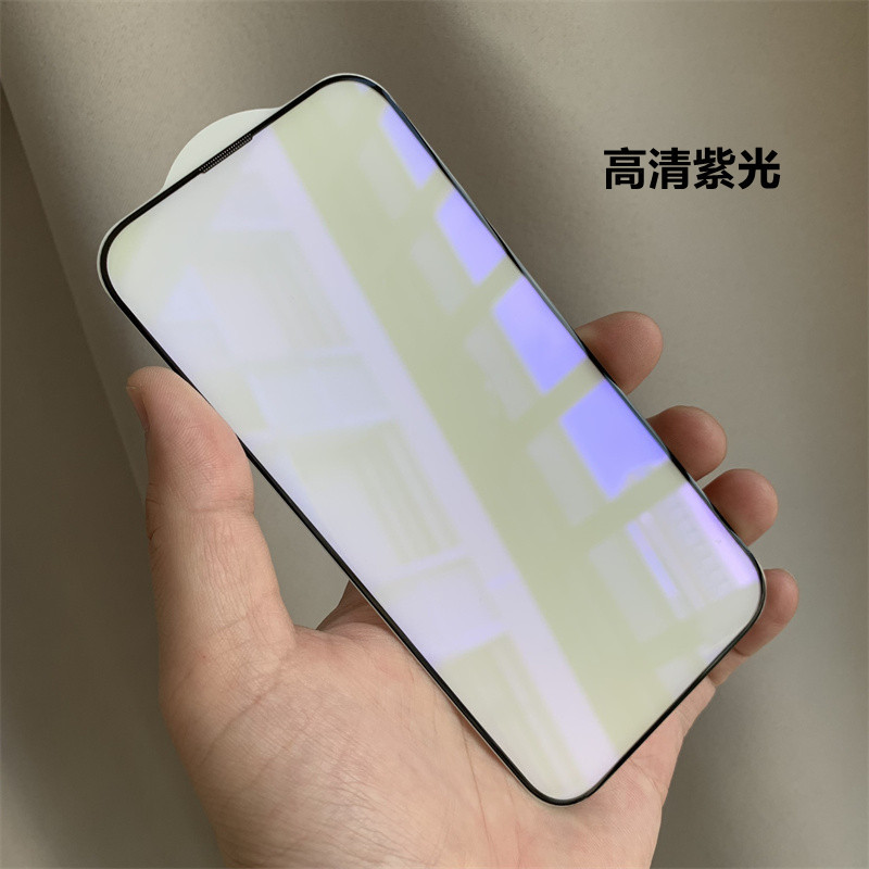 適用蘋果15鋼化膜iPhone14promax一體式防塵紫光鋼化膜13防藍光膜