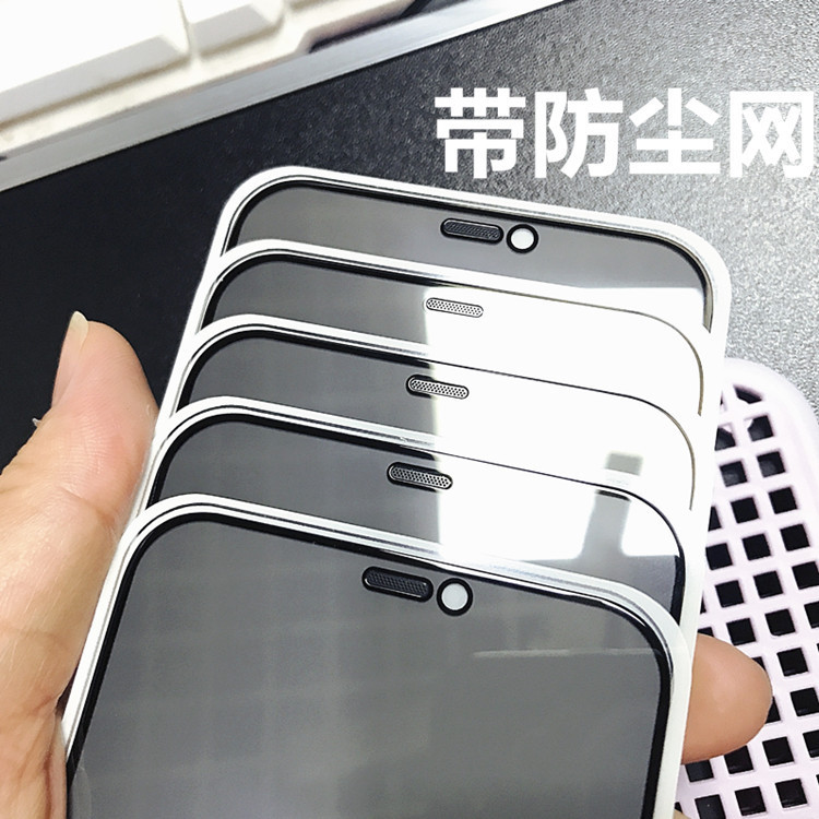 適用蘋果12PROMAX防窺防塵網鋼化膜蘋果13PROMAX一體防塵17ProMax