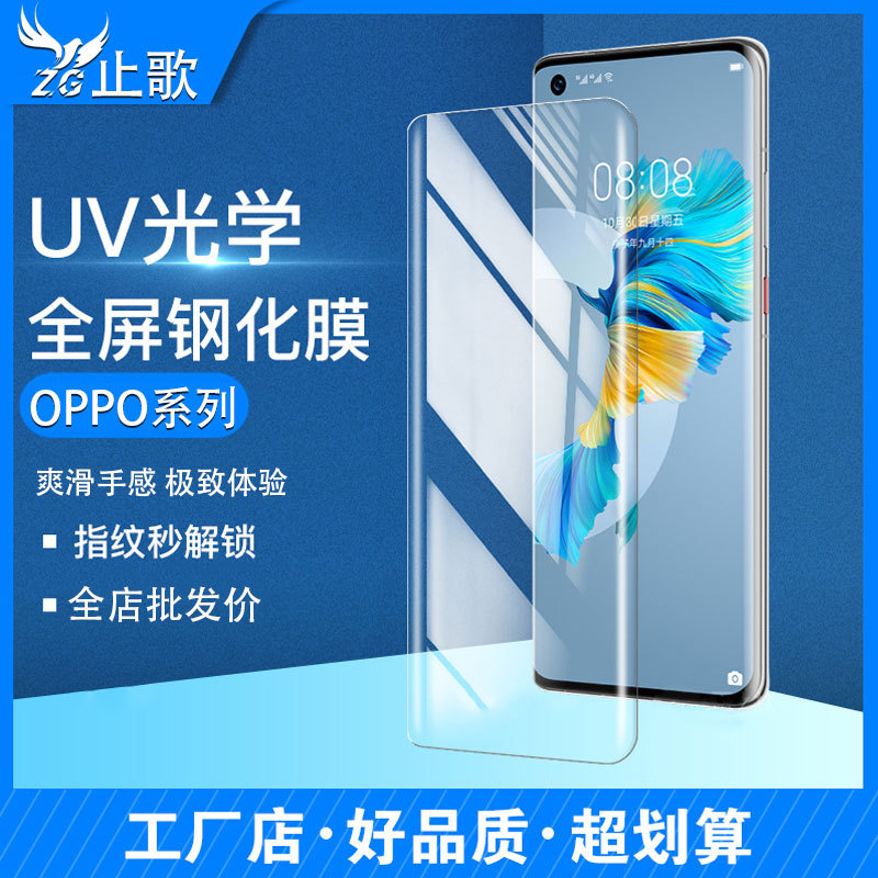 適用OPPORENO9鋼化膜RENO9PRO高清UV膜RENO10曲屏膜FINDX3 FINDX7
