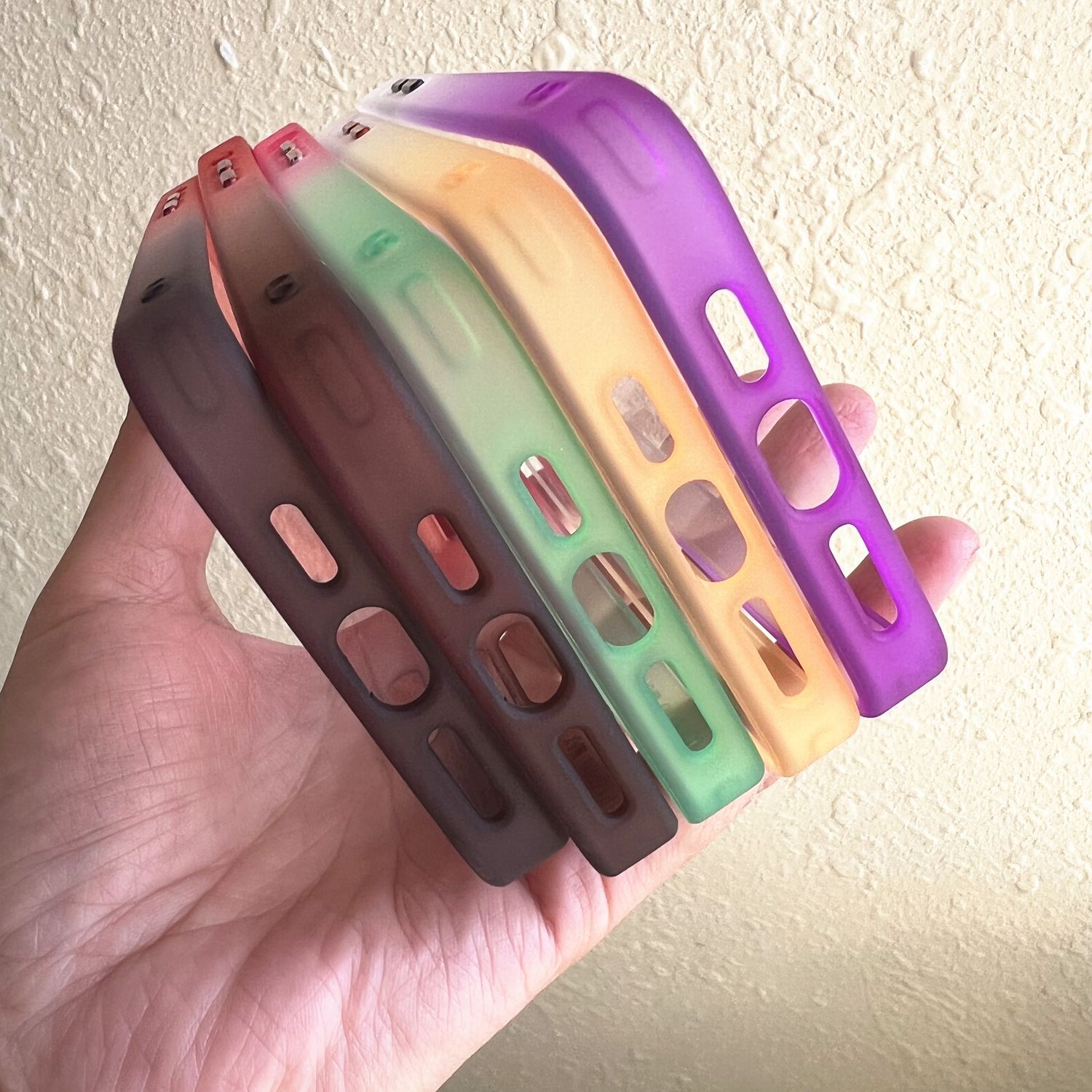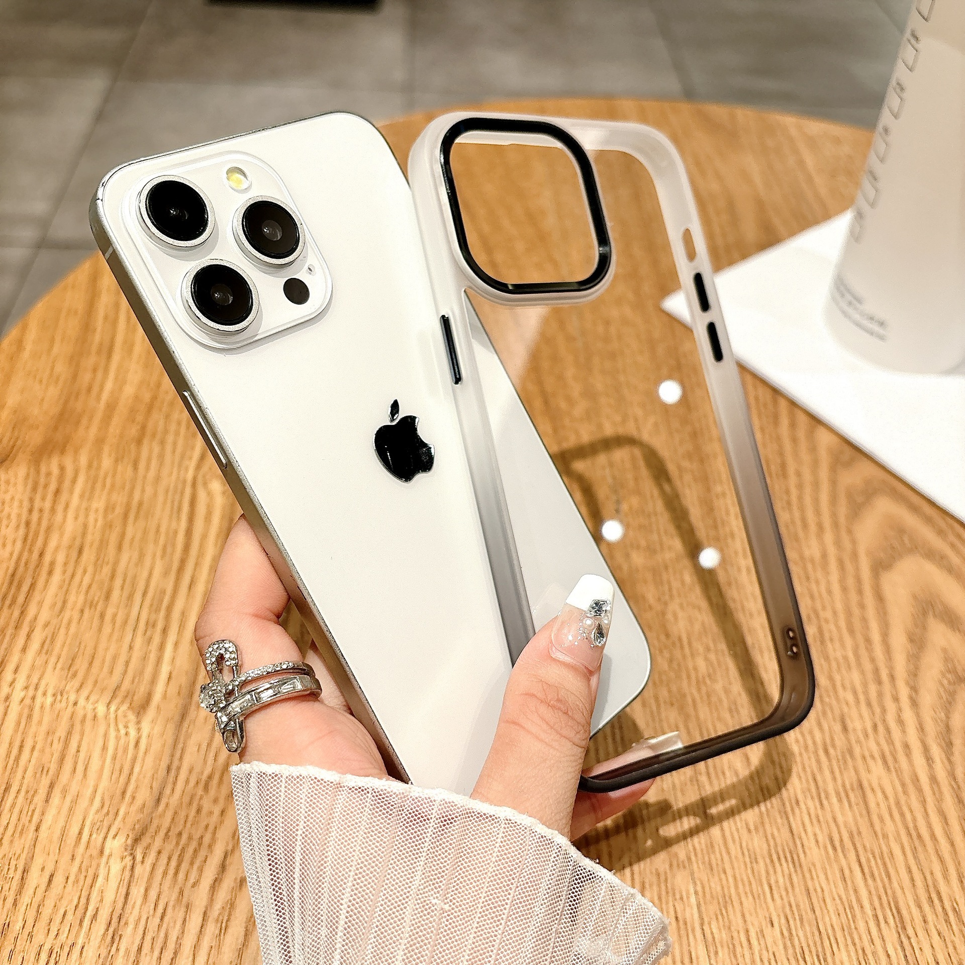 適用蘋果17PRO/air/15/14金盾漸變色手機殼 DIY凹槽金盾殼 漸變黑