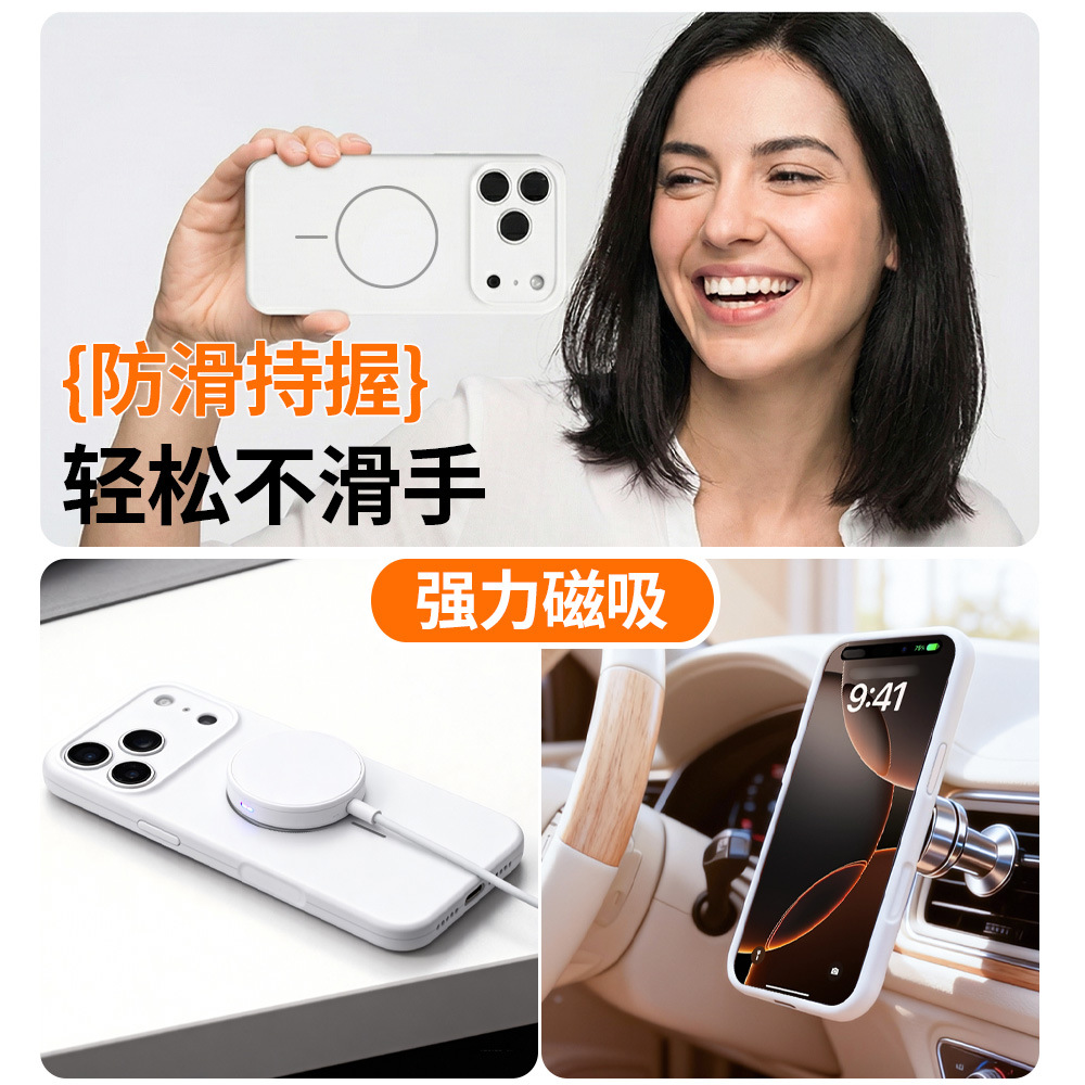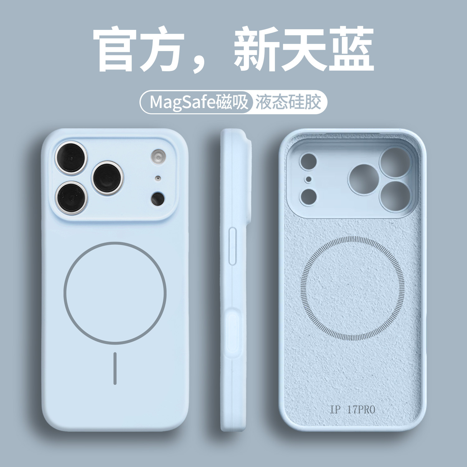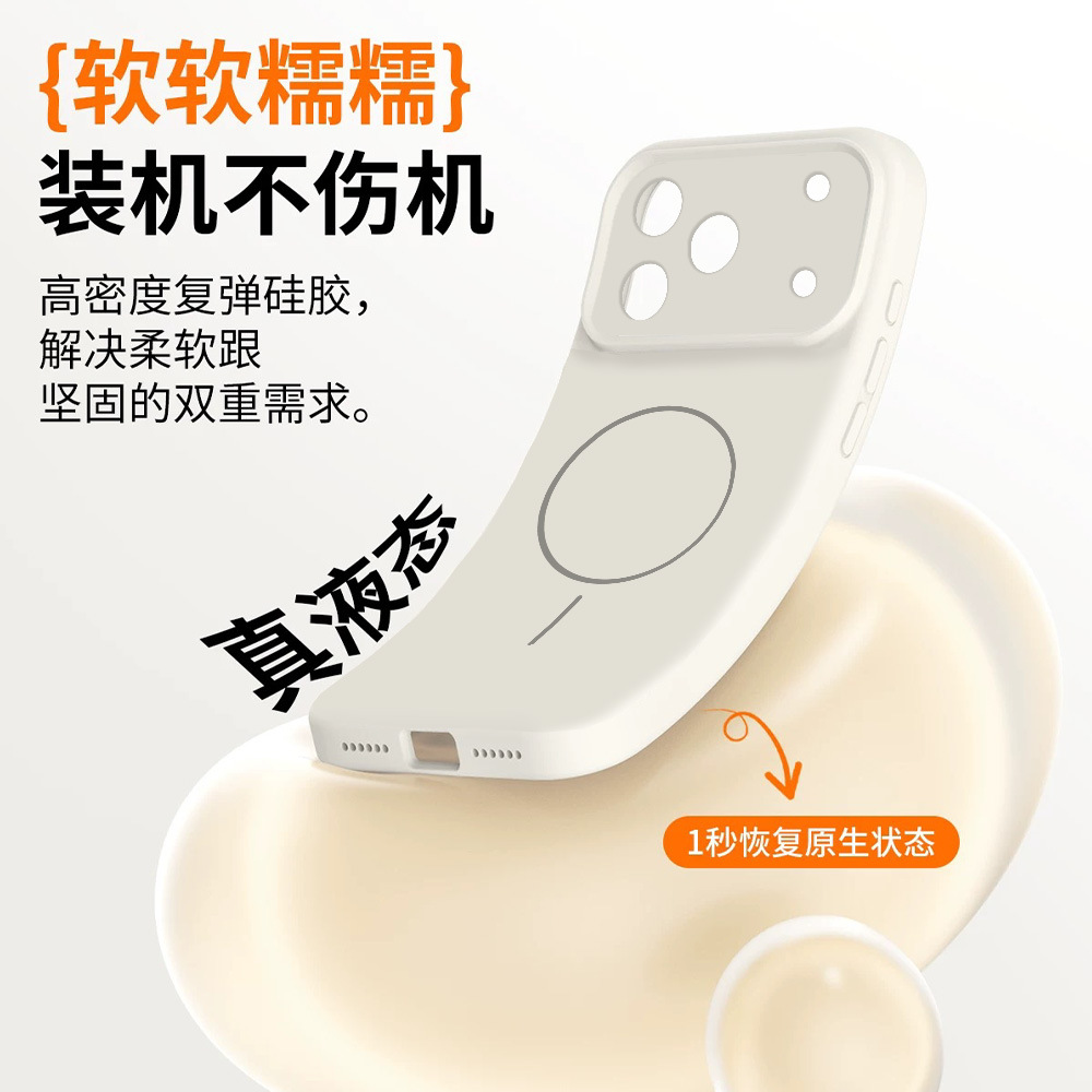 適用磁吸鏡頭全包17蘋果15液態矽膠13Pro手機殼直邊16pro保護套